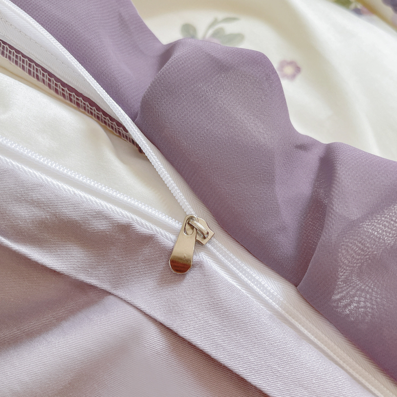 乐童家纺 2024新款13372全棉雪纺花边四件套直播热款 紫葡萄