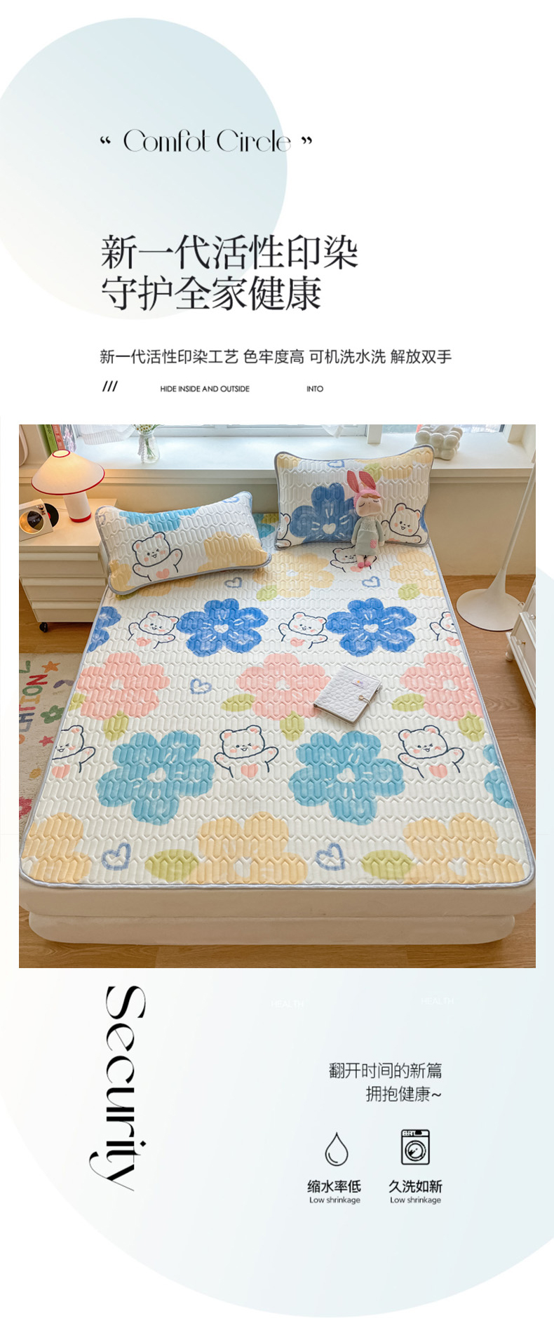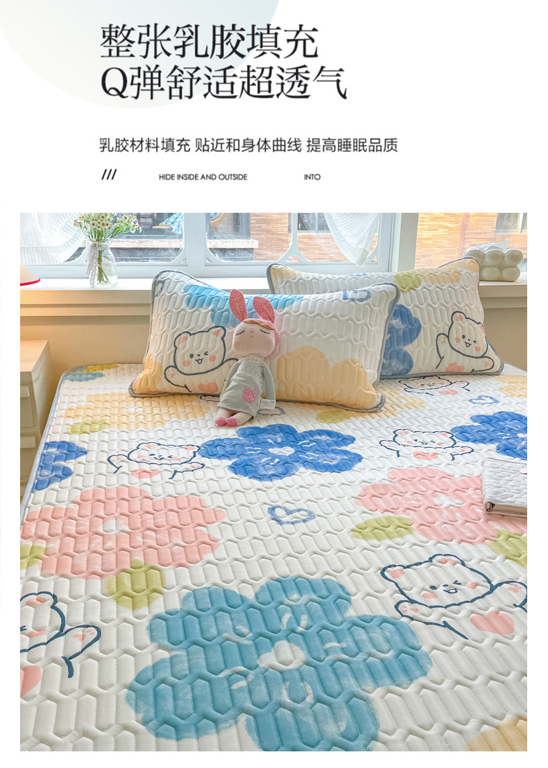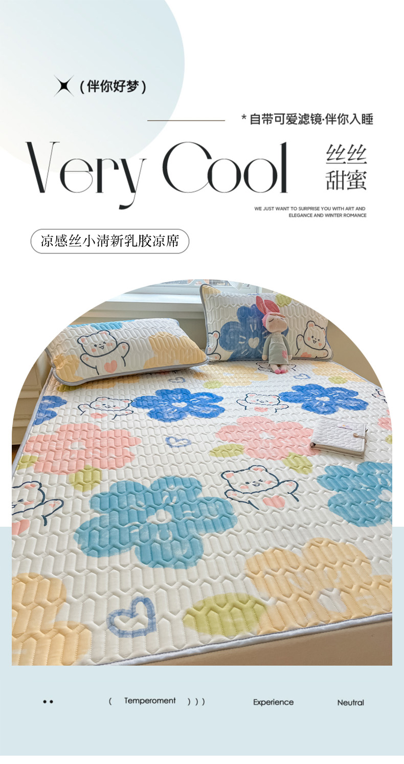 商品名称:柒月家居 2024新款贴身舒适厚度0.5小清新乳胶凉席 花园小熊