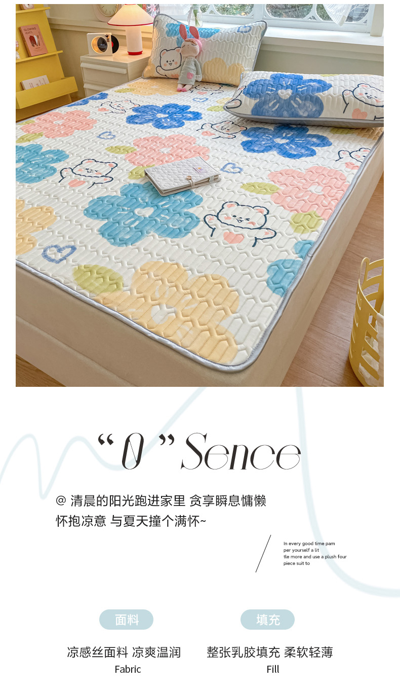 柒月家居 2024新款贴身舒适厚度0.5小清新乳胶凉席 花园小熊