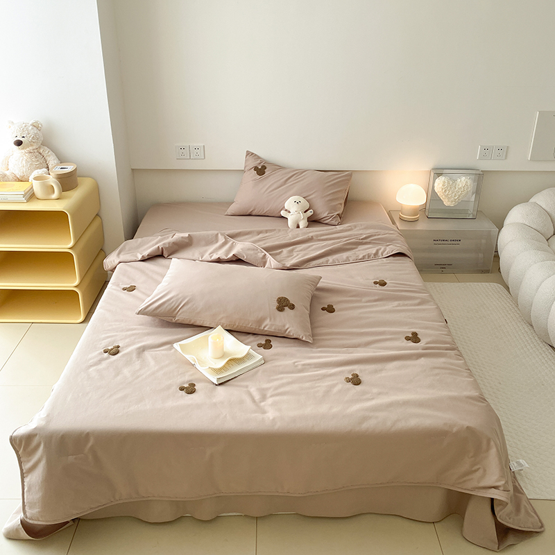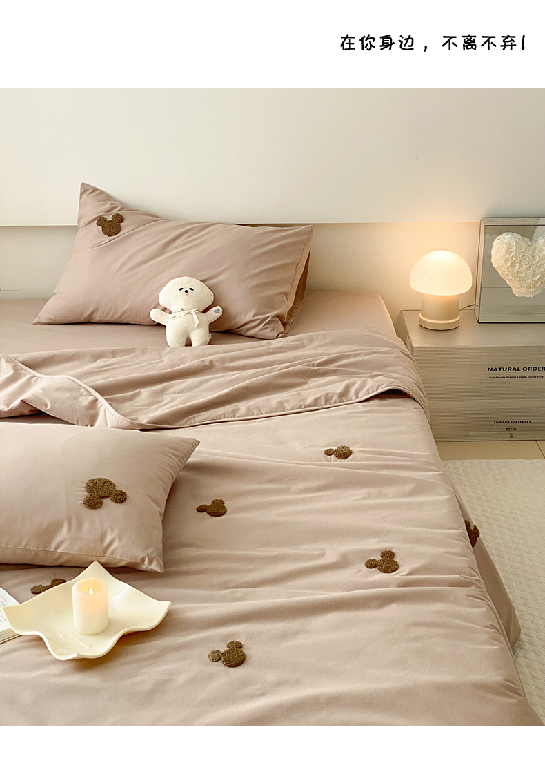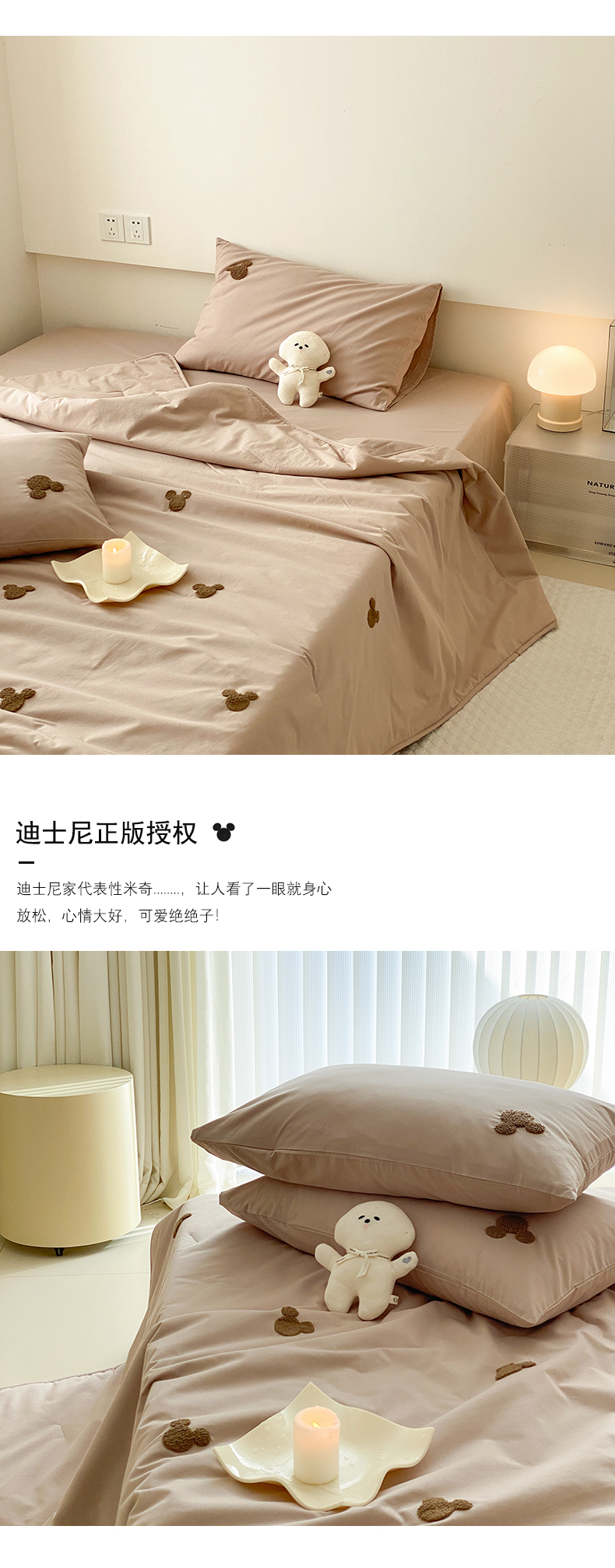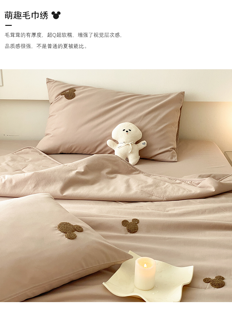 Mr.pig猪先生水洗棉 2024新款迪士尼全棉夏被四件套米奇毛巾绣夏凉被 米奇头纸棕