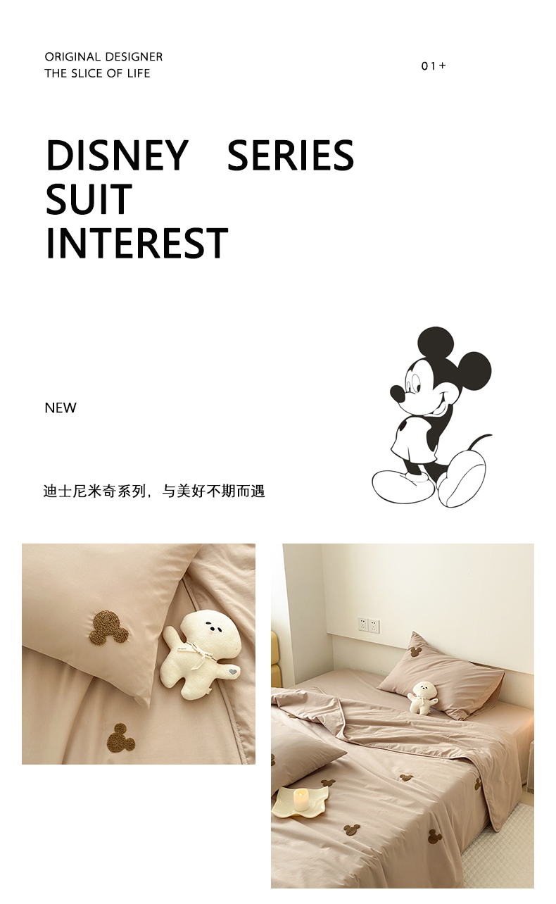免费授权迪士尼全棉水洗棉四件套毛巾绣迪士尼四件套Diseny,米奇-白,米奇-纸棕,米奇-浅蓝