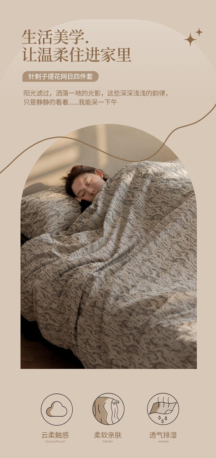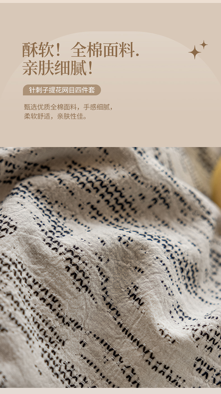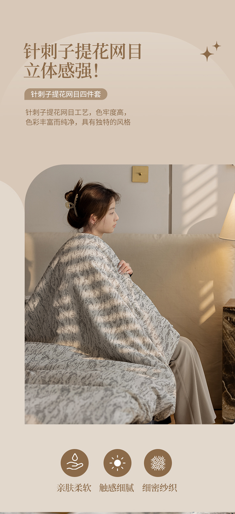 (总)山舍 2024新款针刺子提花网目四件套-無由系列