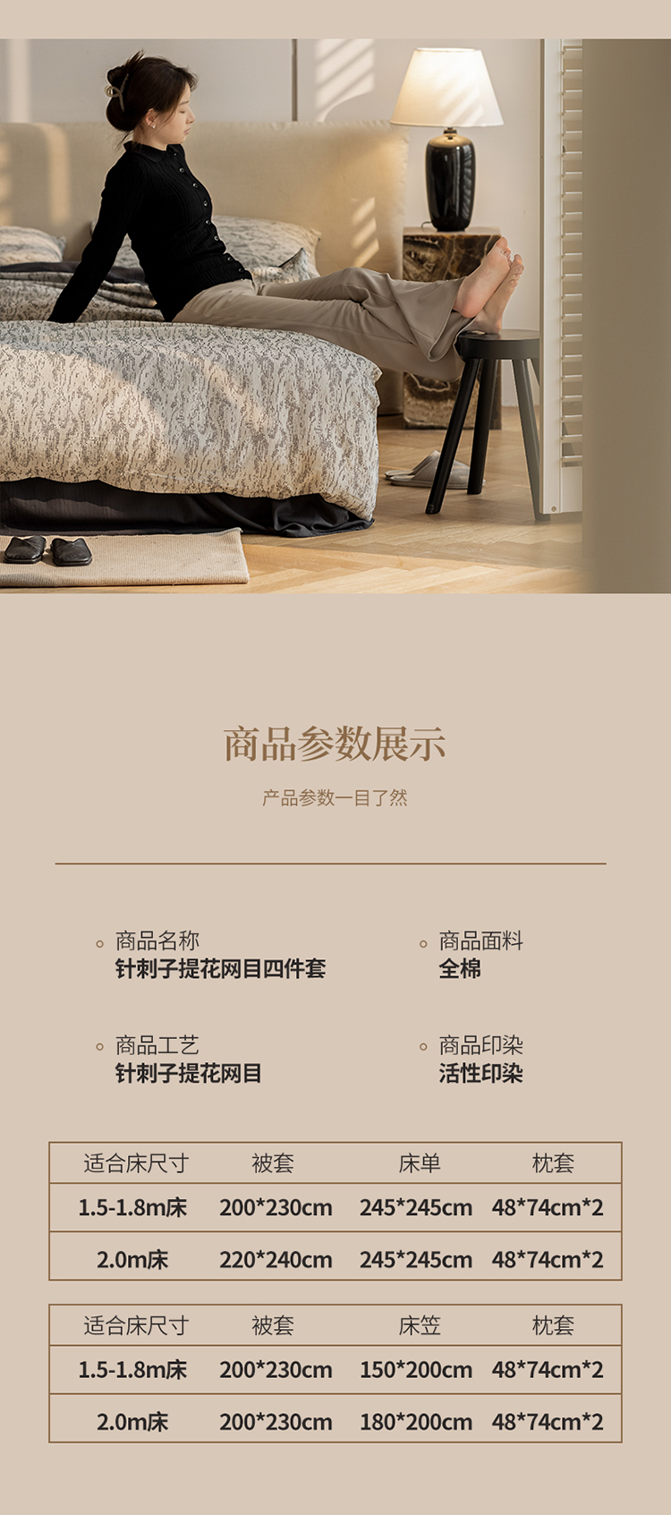 商品名称:(总)山舍 2024新款针刺子提花网目四件套-無由系列
