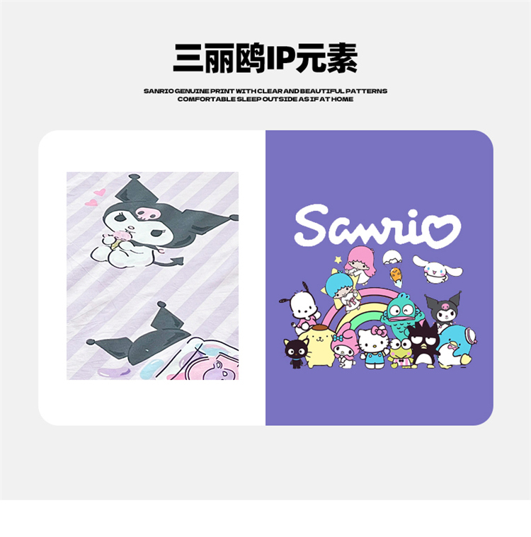 • 91家纺网 家纺一手货源 找家纺 金爱家 2024新款三丽鸥正版授权纯棉旅行隔脏睡袋火车出行睡袋系列(送同款收纳袋) 纯棉睡袋-美美库洛米