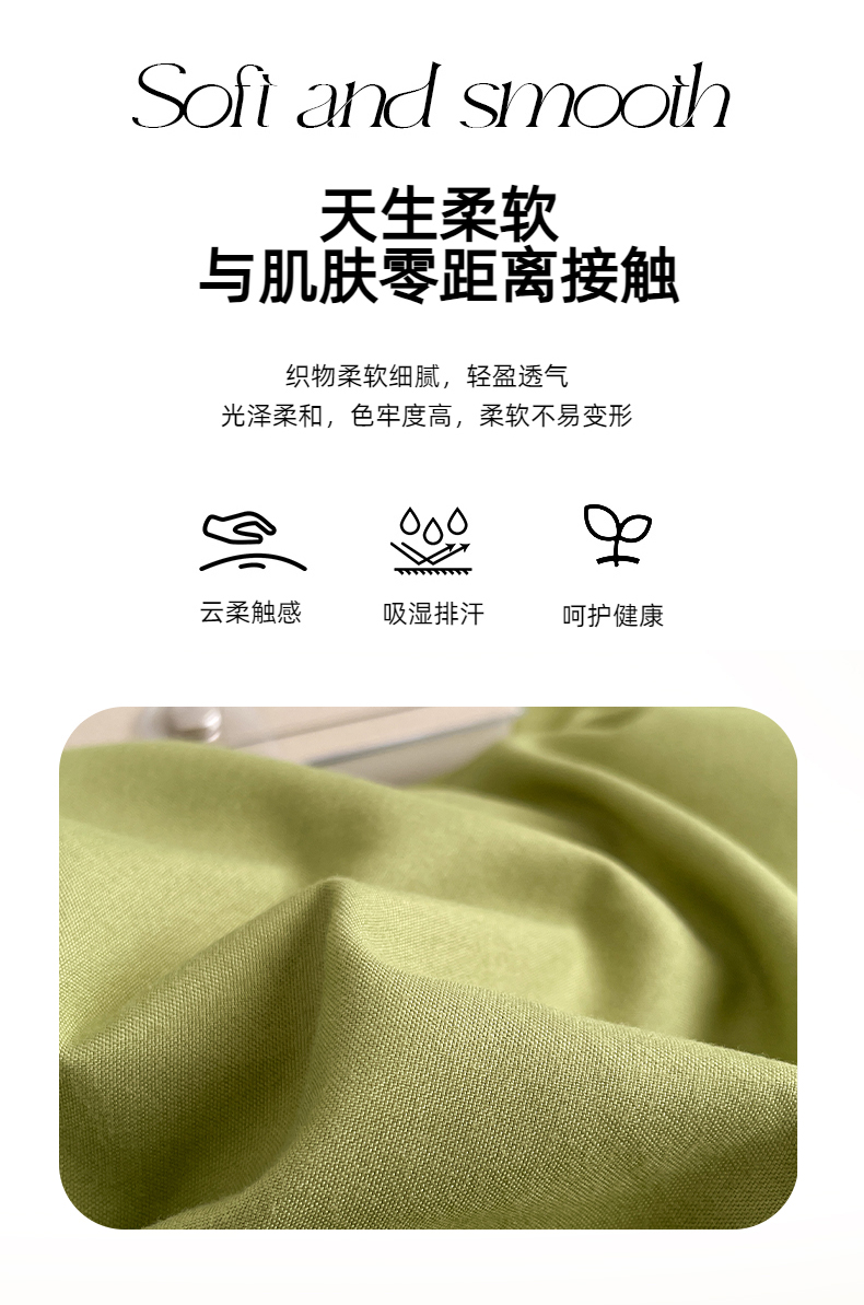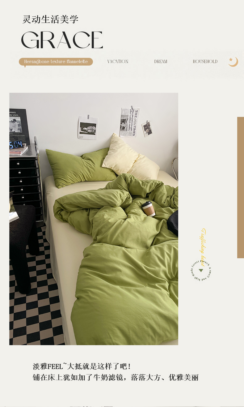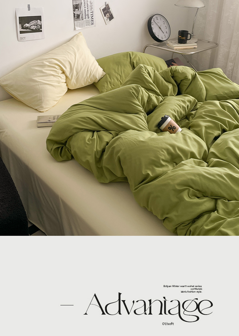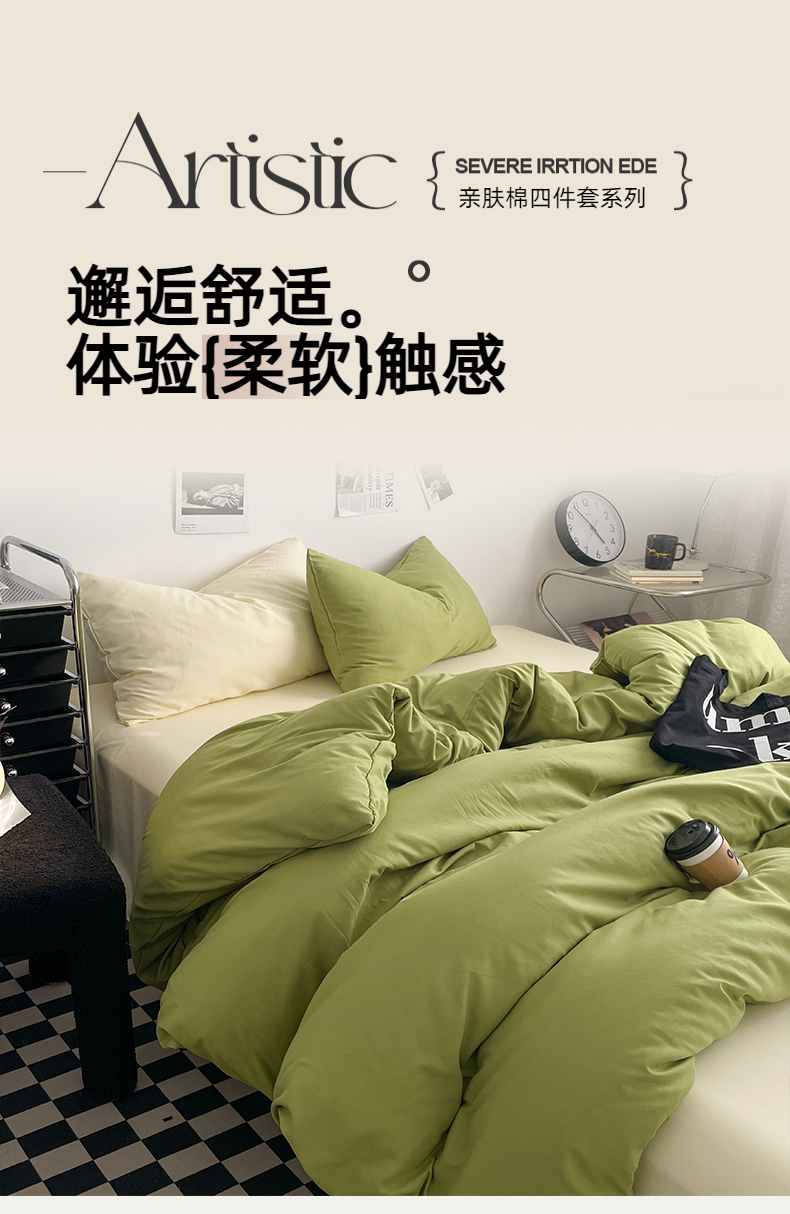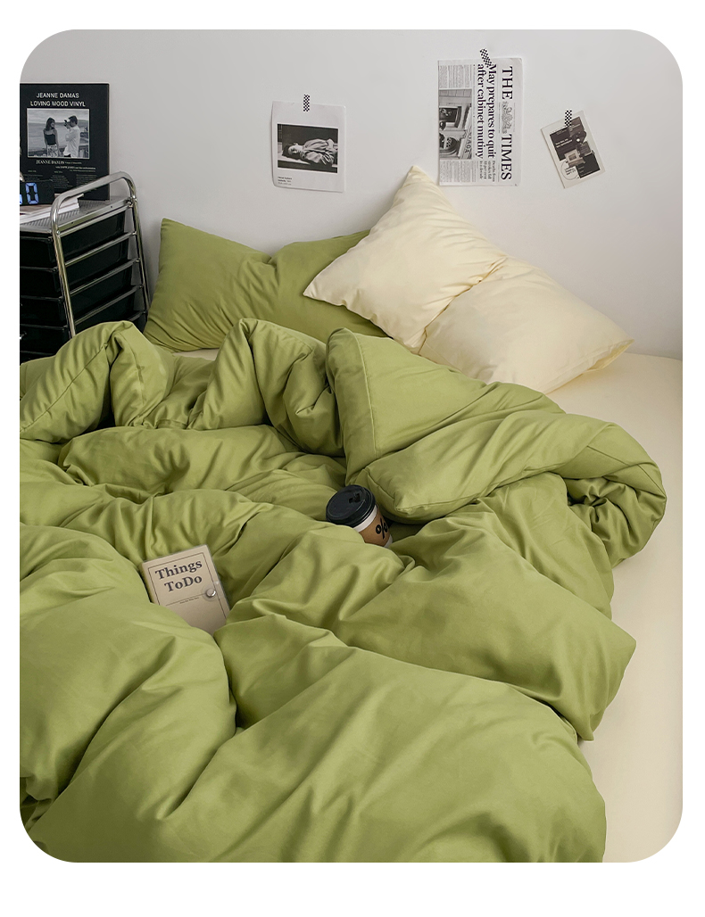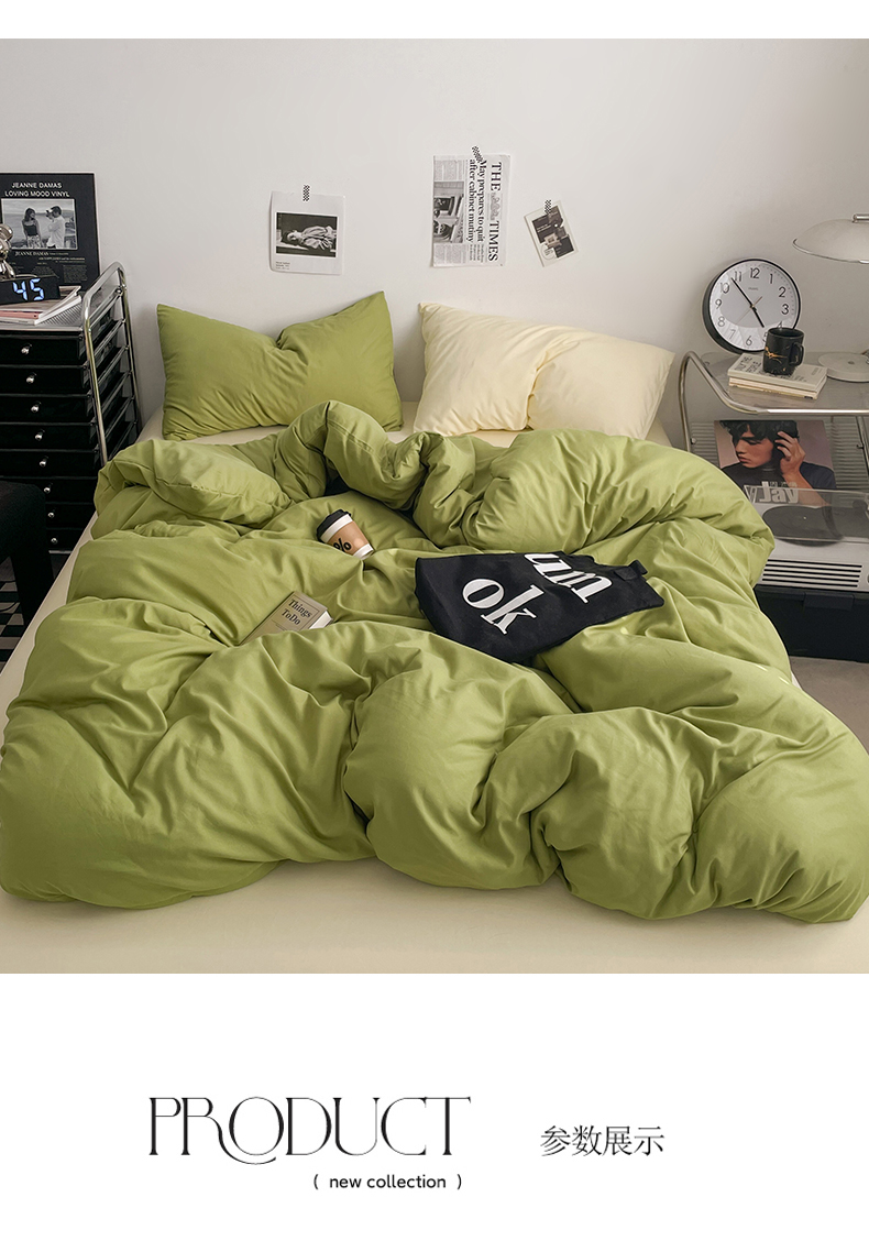 当前位置: 91家纺网 > 商品网购 > 床品套件 > 四件套 > 全棉普通四件套 > 思诺羽床笠 2024新款水洗棉纯色混搭四件套系列 牛油果绿+奶油黄