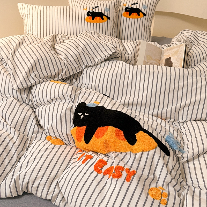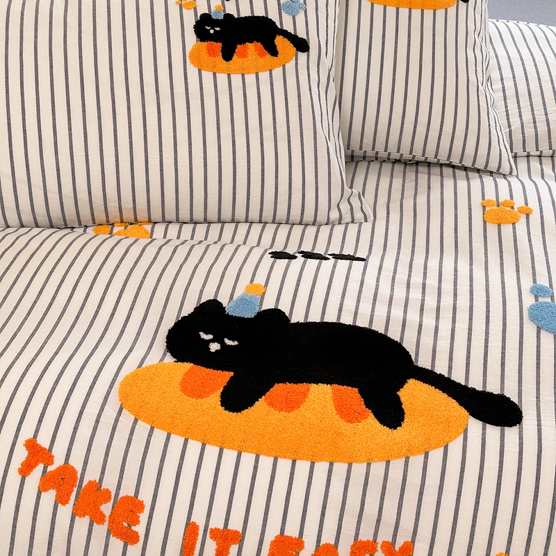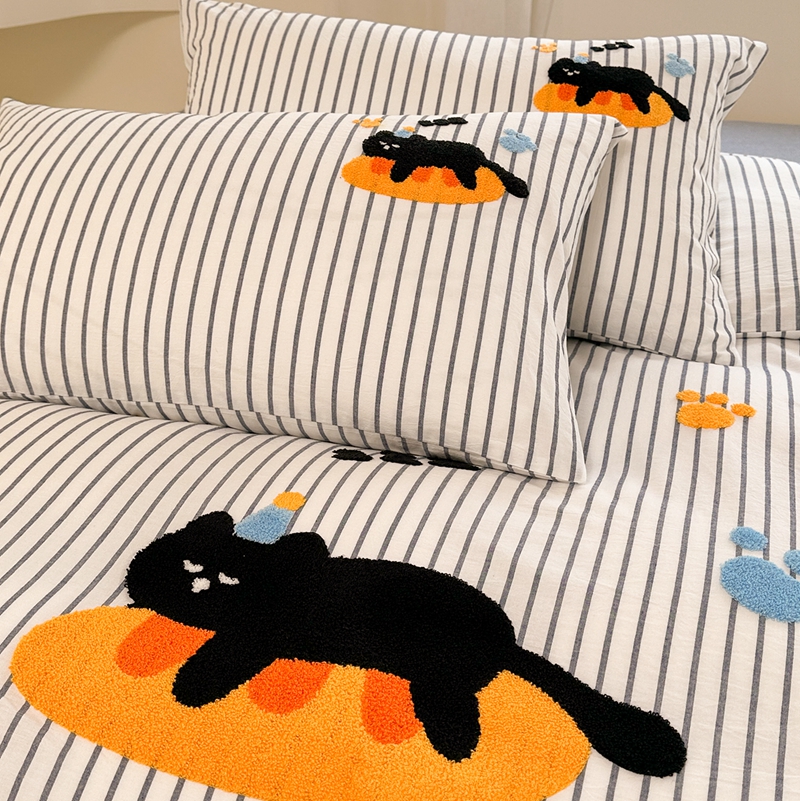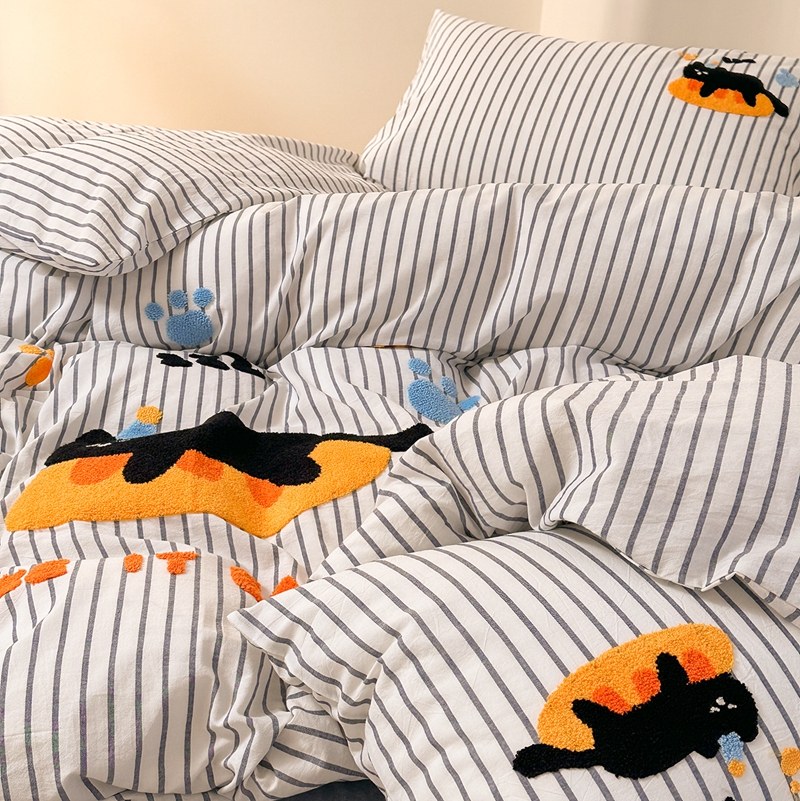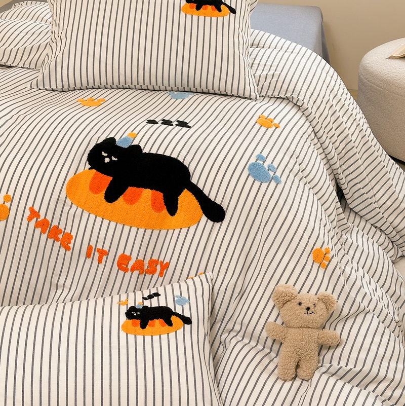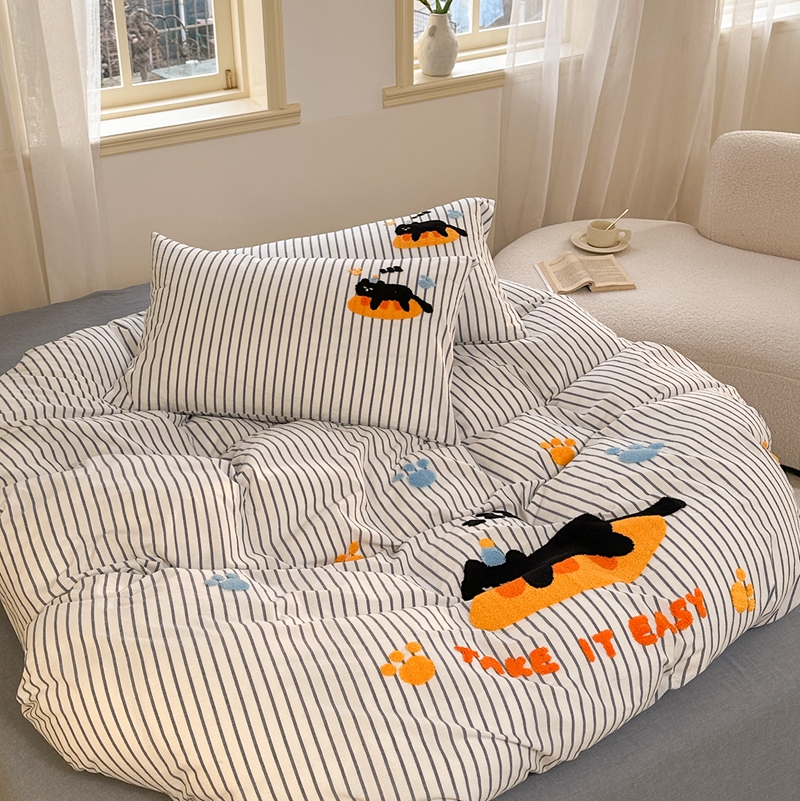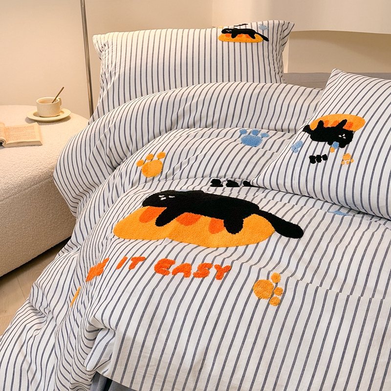 洋铭区(原狠狠爱) 2024新款色织水洗棉毛巾绣四件套 趴趴猫