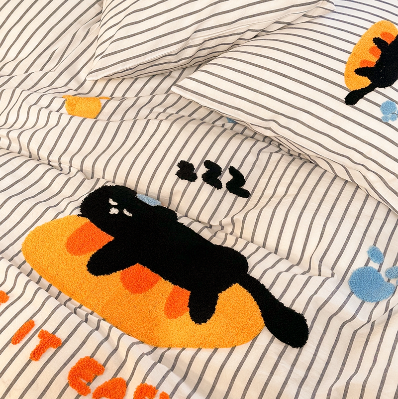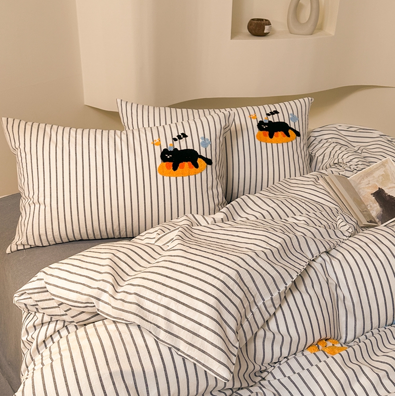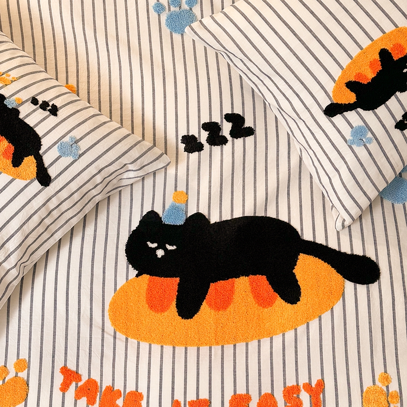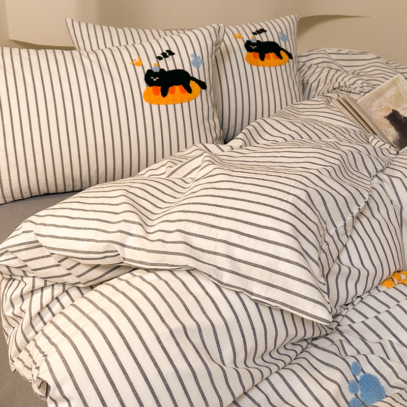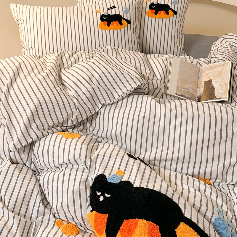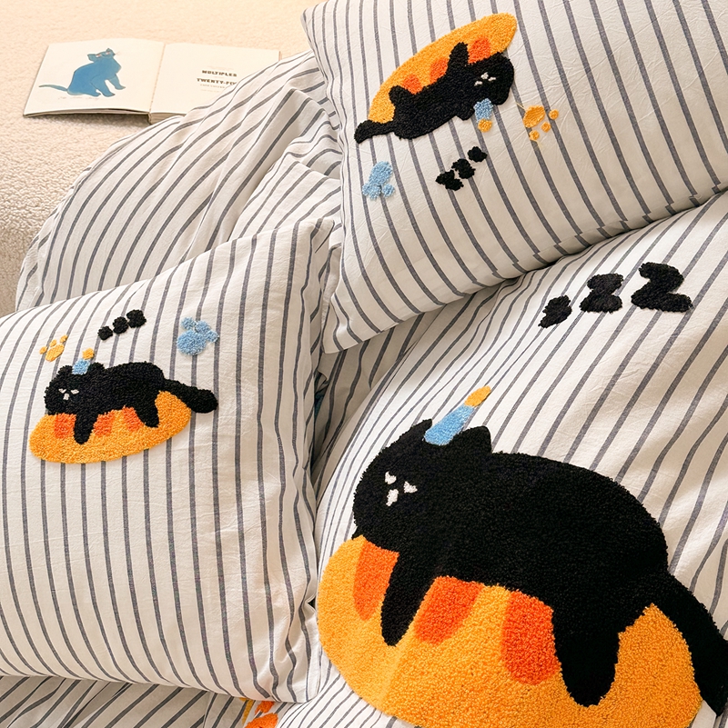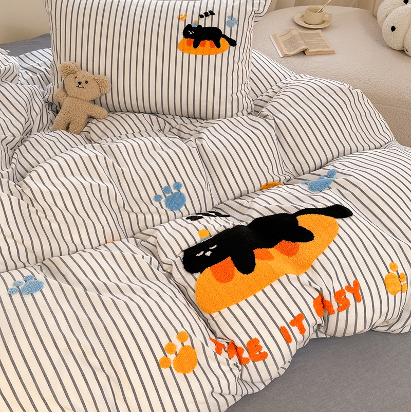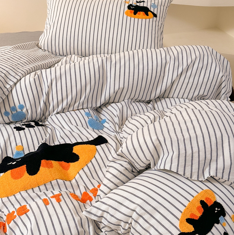 洋铭区(原狠狠爱) 2024新款色织水洗棉毛巾绣四件套 趴趴猫