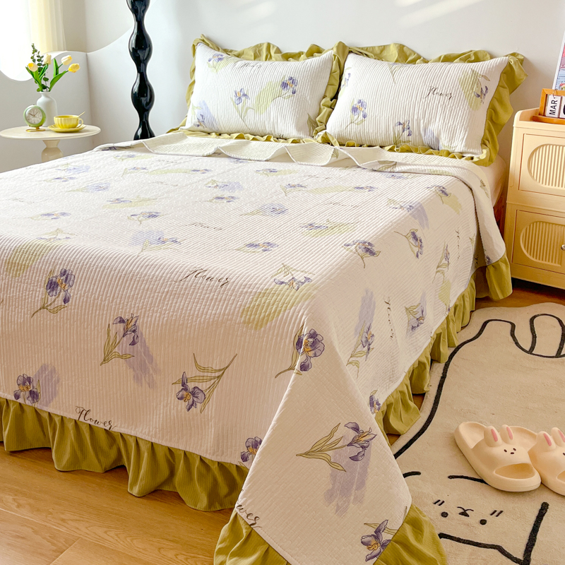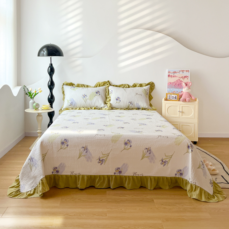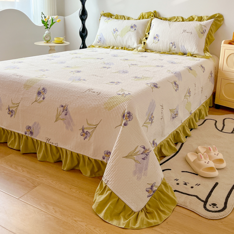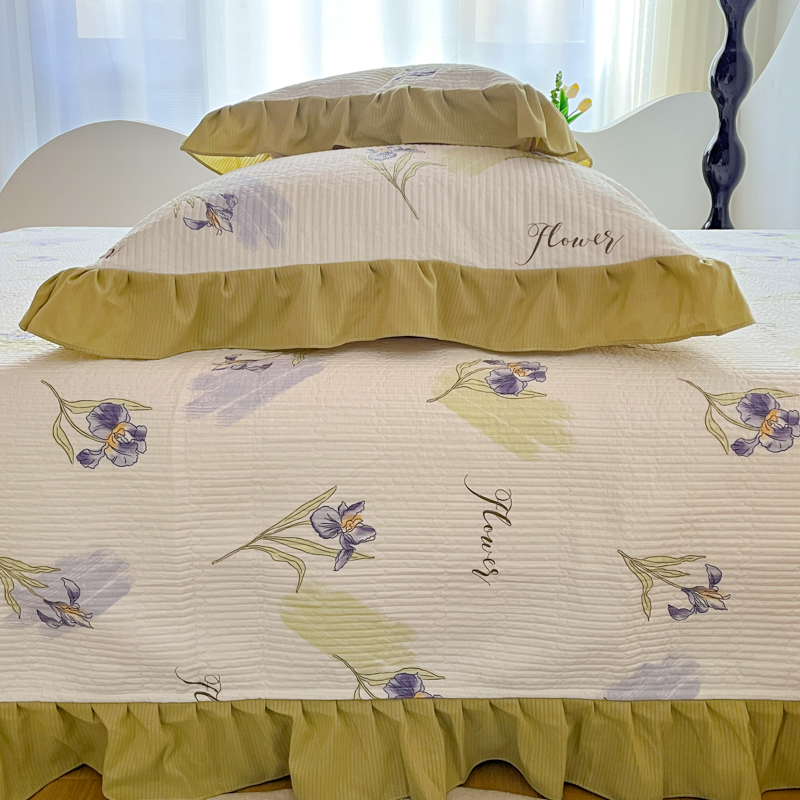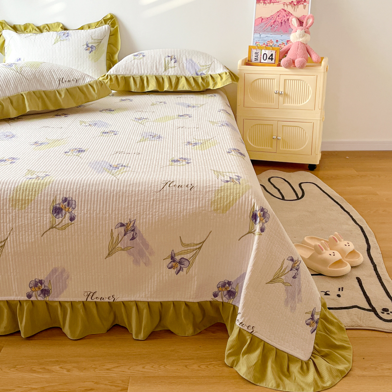子曰 2024新款印花素色花边床盖三件套四件套 君子兰