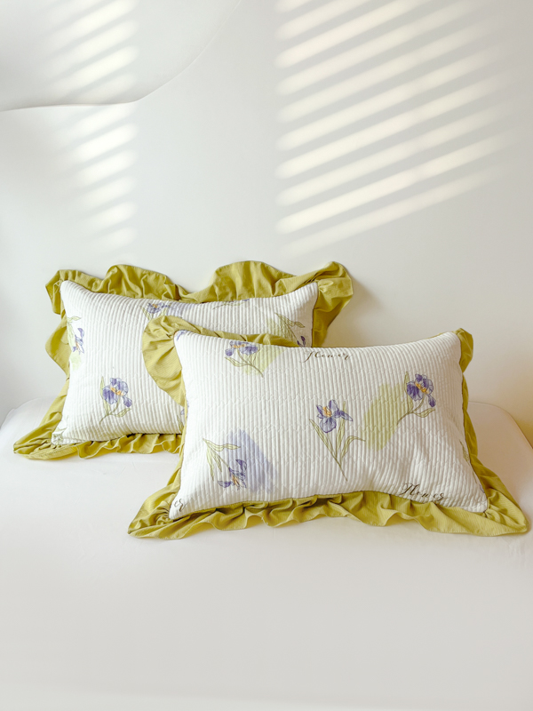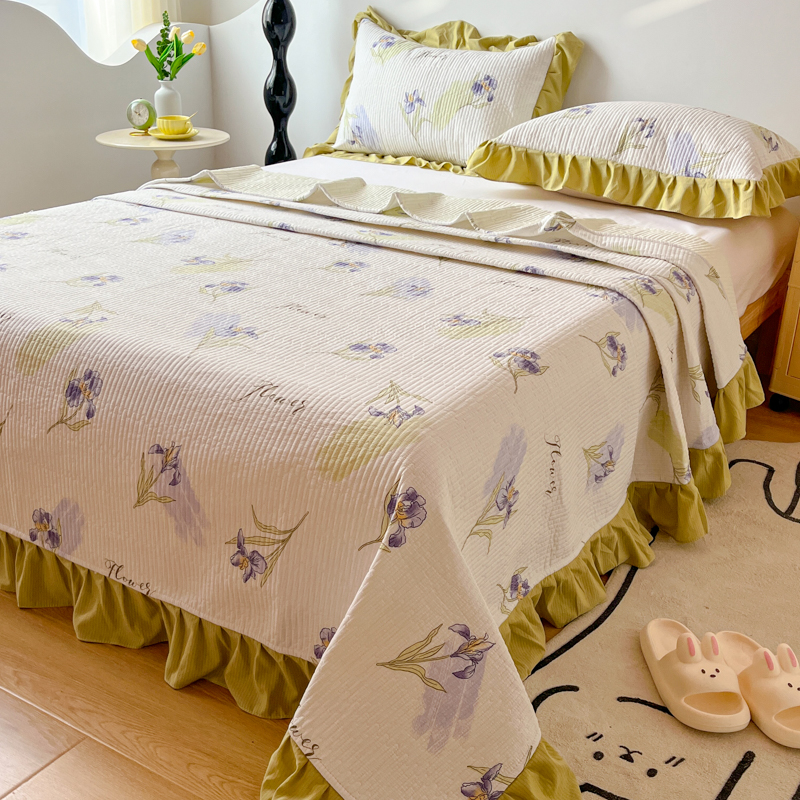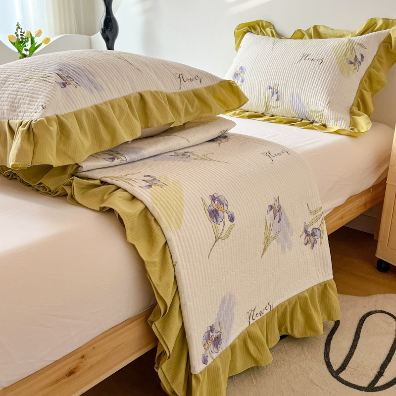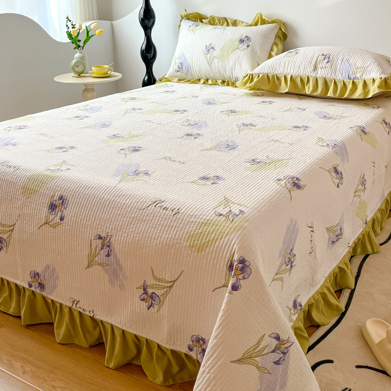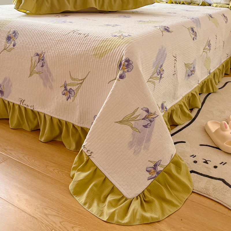 子曰 2024新款印花素色花边床盖三件套四件套 君子兰