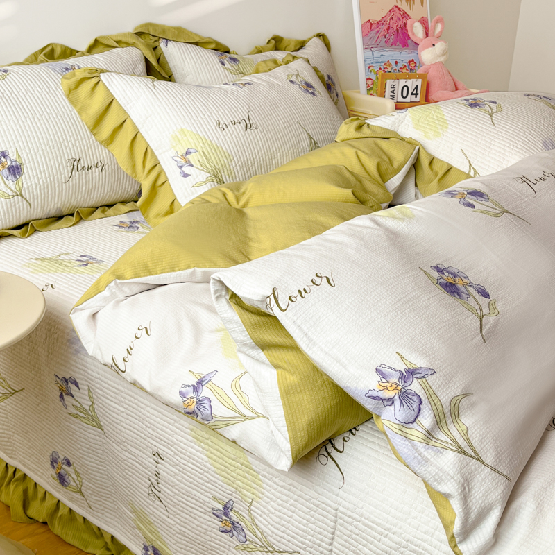 商品名称:子曰 2024新款印花素色花边床盖三件套四件套 君子兰
