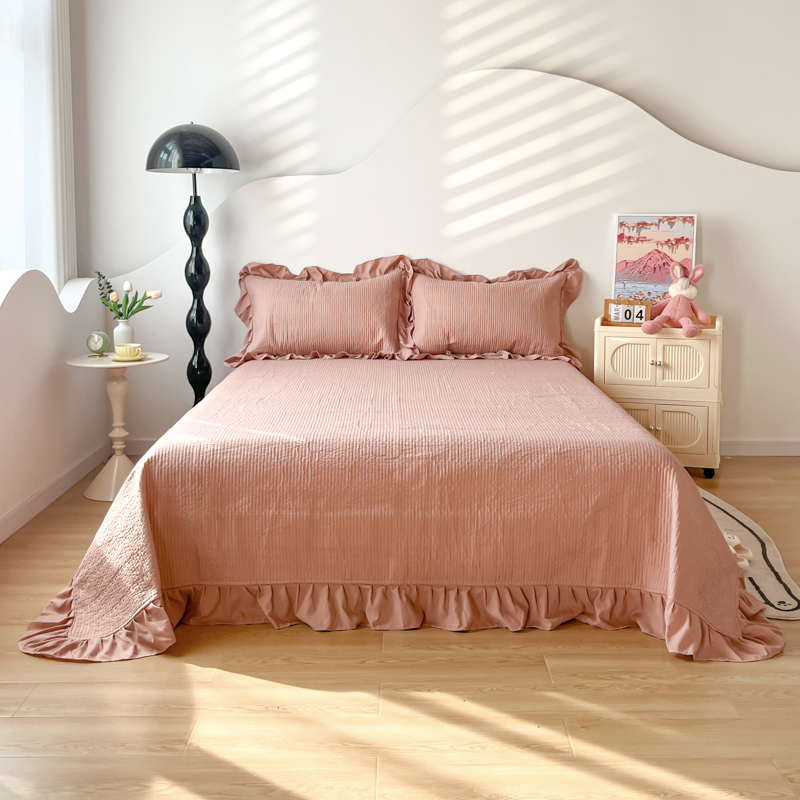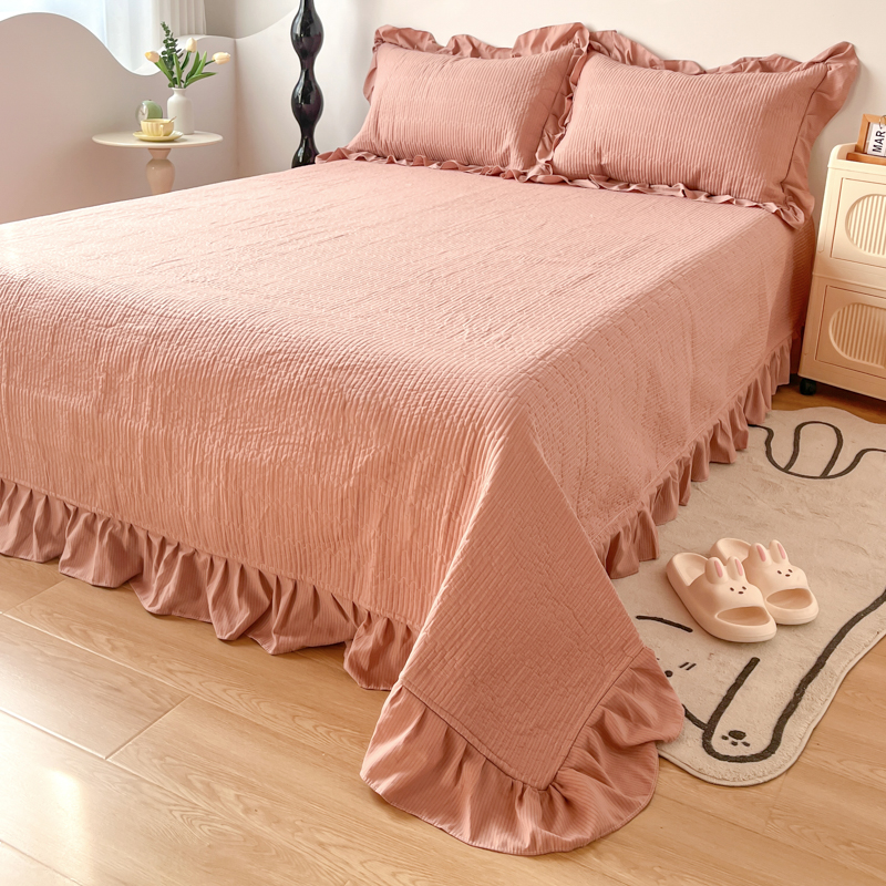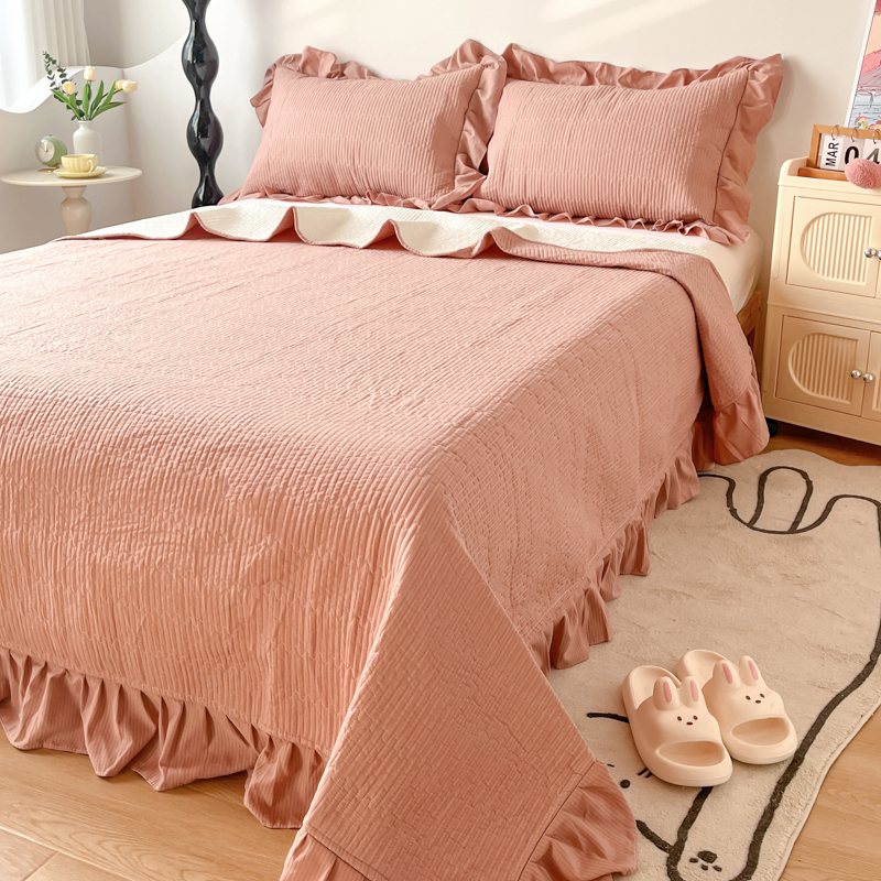 商品名称:子曰 2024新款印花素色花边床盖三件套四件套 西柚红