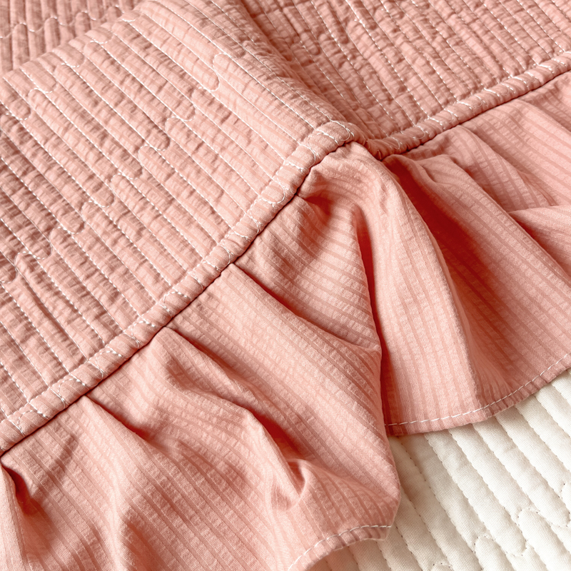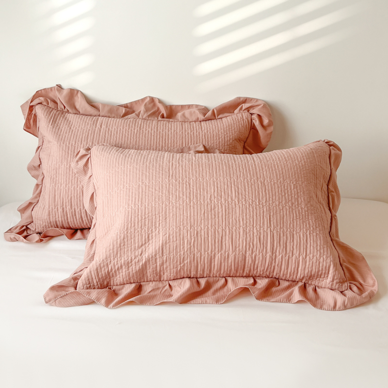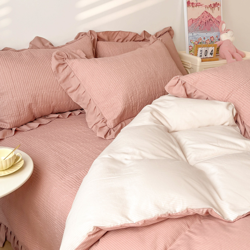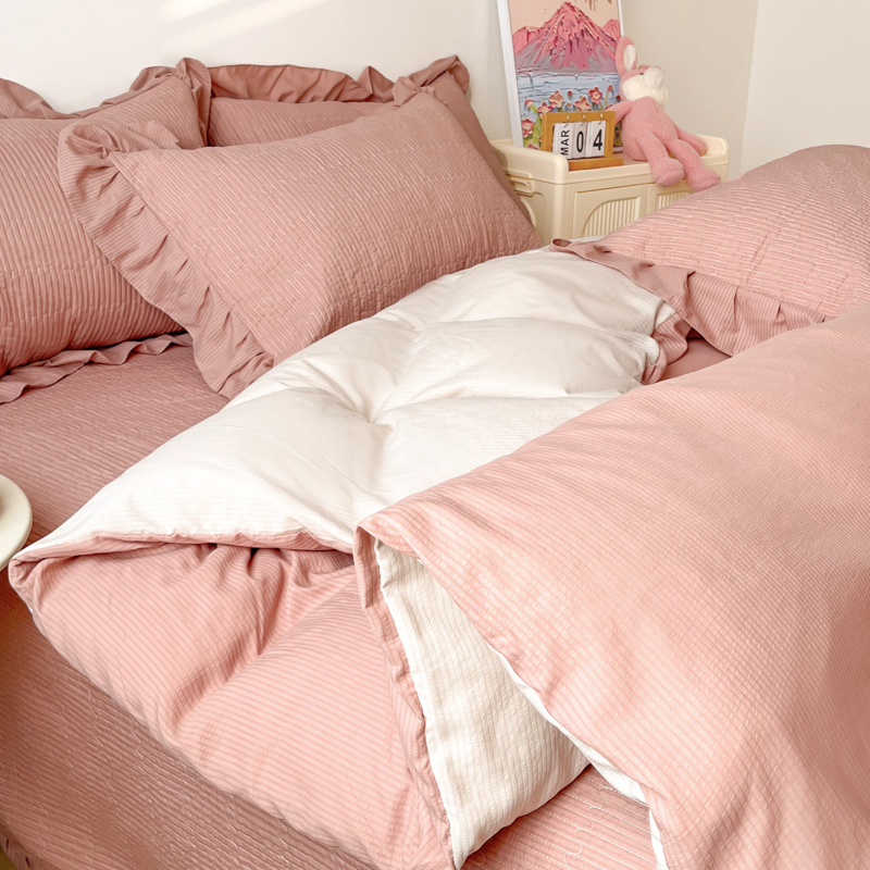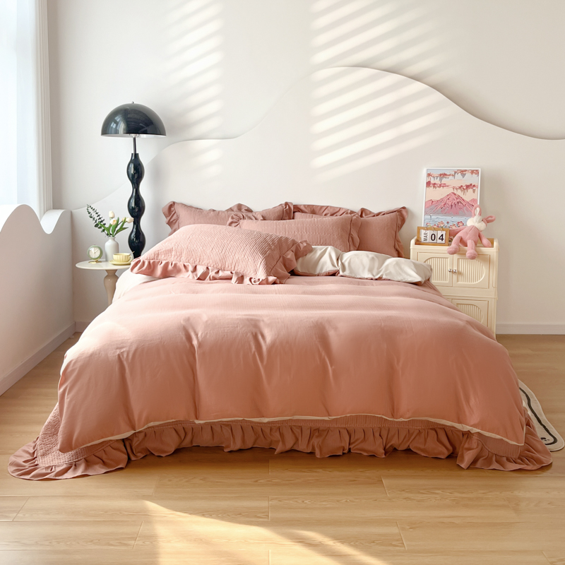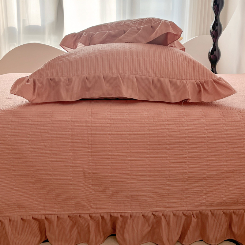 子曰 2024新款印花素色花边床盖三件套四件套 西柚红
