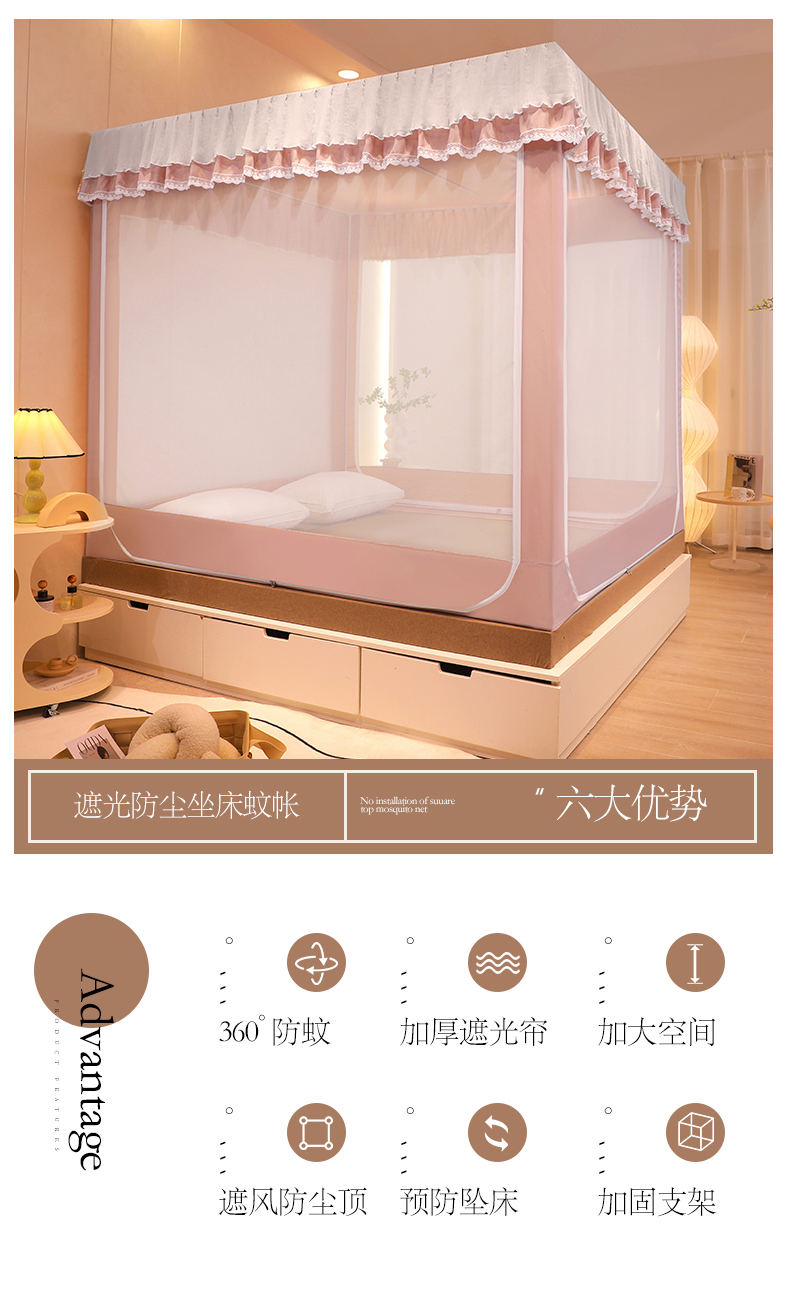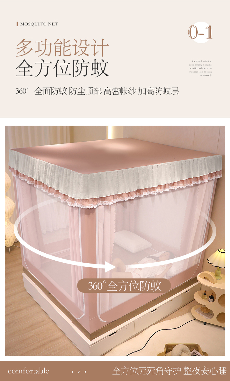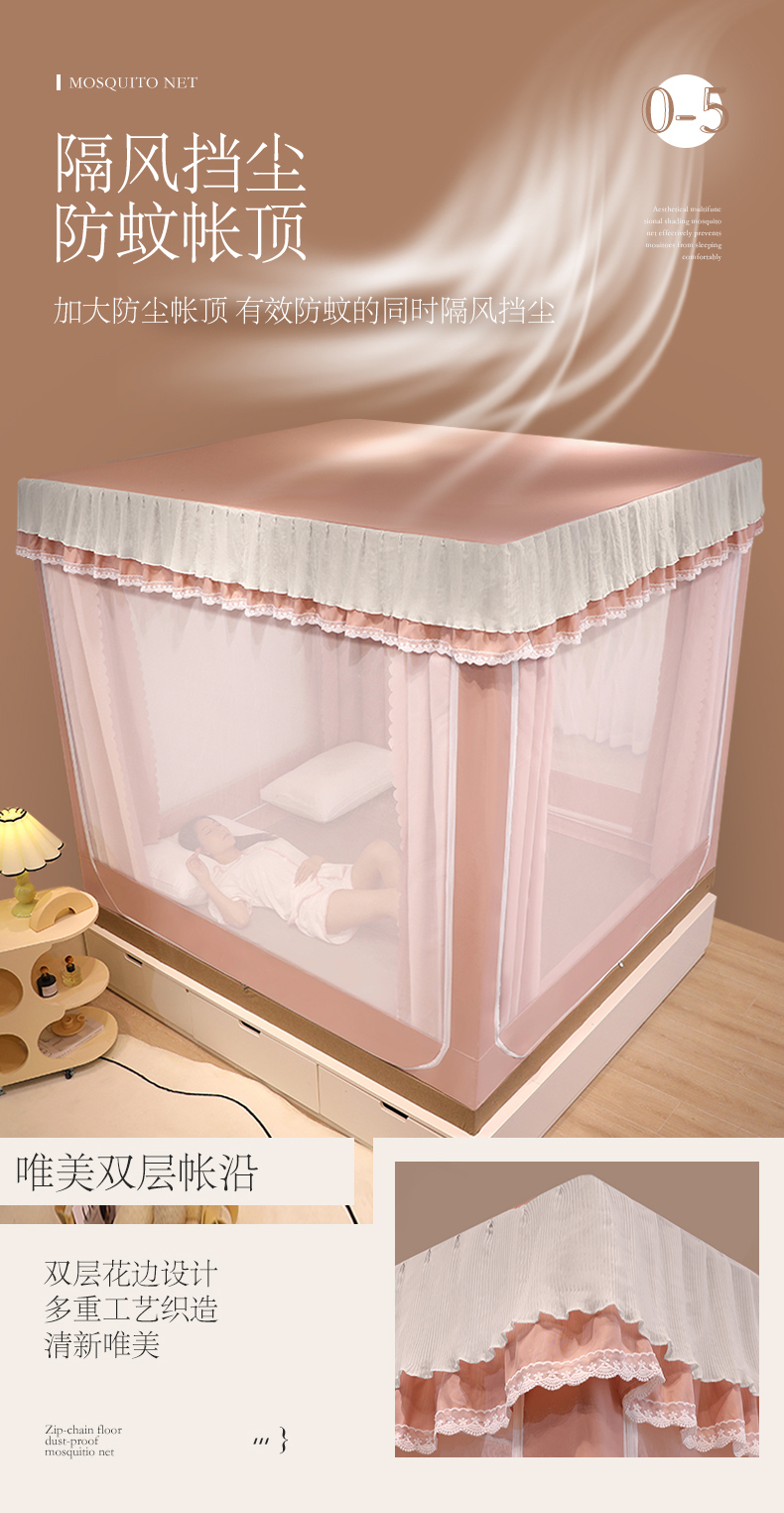 (总)初心家纺 2025新款高效防蚊落地单开门花边蚊帐--舒夏系列,舒夏单开门白色(网纱顶),舒夏单开门粉色(网纱顶),舒夏单开门米黄(网纱顶),舒夏单开门水绿(网纱顶),舒夏单开门玉色(网纱顶),舒夏单开门紫色(网纱顶)