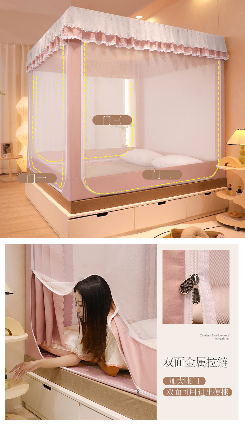 (总)初心家纺 2025新款升级款三开门宫廷蚊帐-春暖花开,白色,粉色,红豆沙,灰色,雾霾蓝