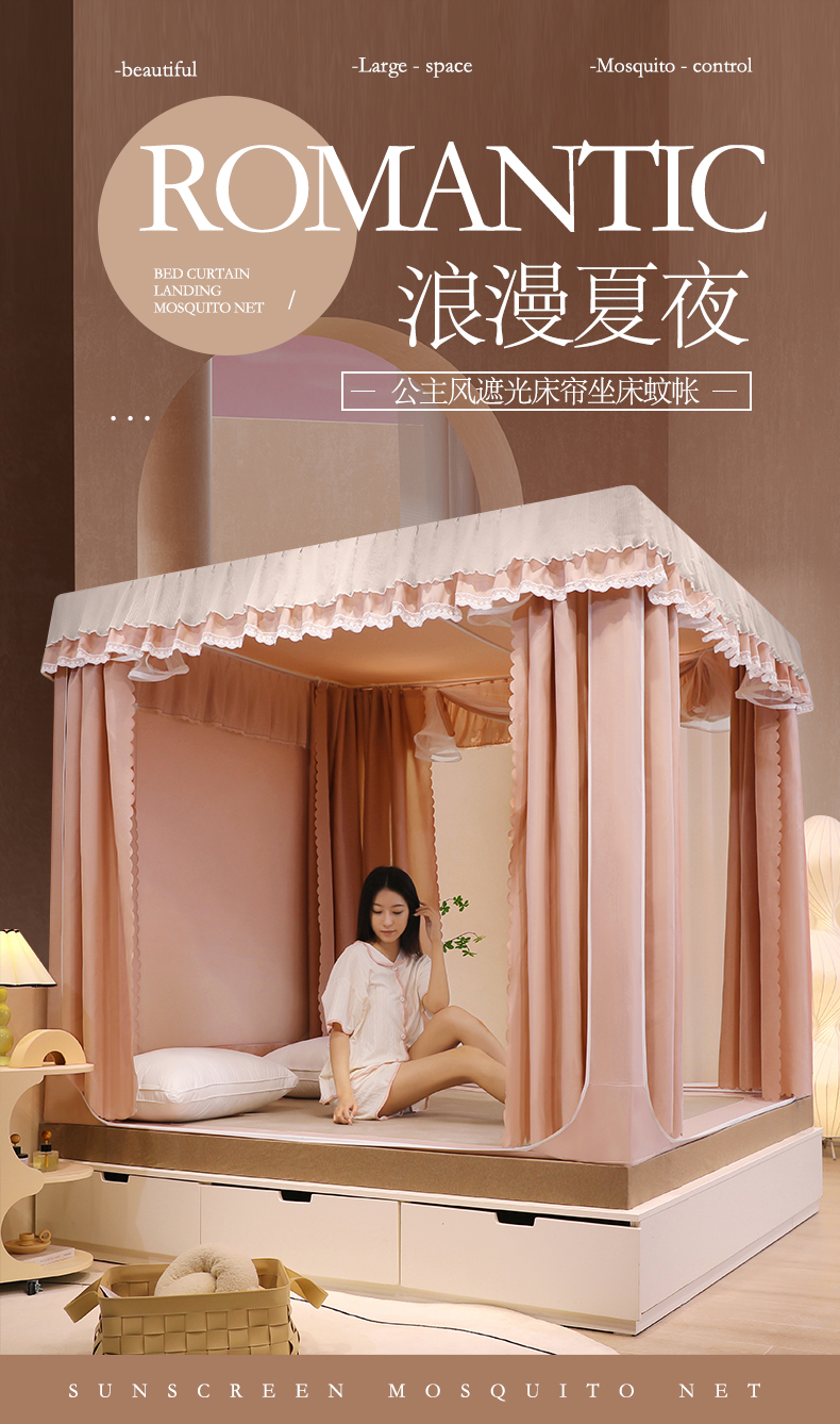 商品名称:初心2025新款242遮光坐床床帘蚊帐鑫系列 豆沙粉
