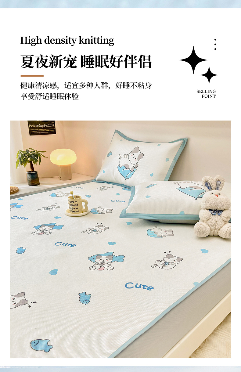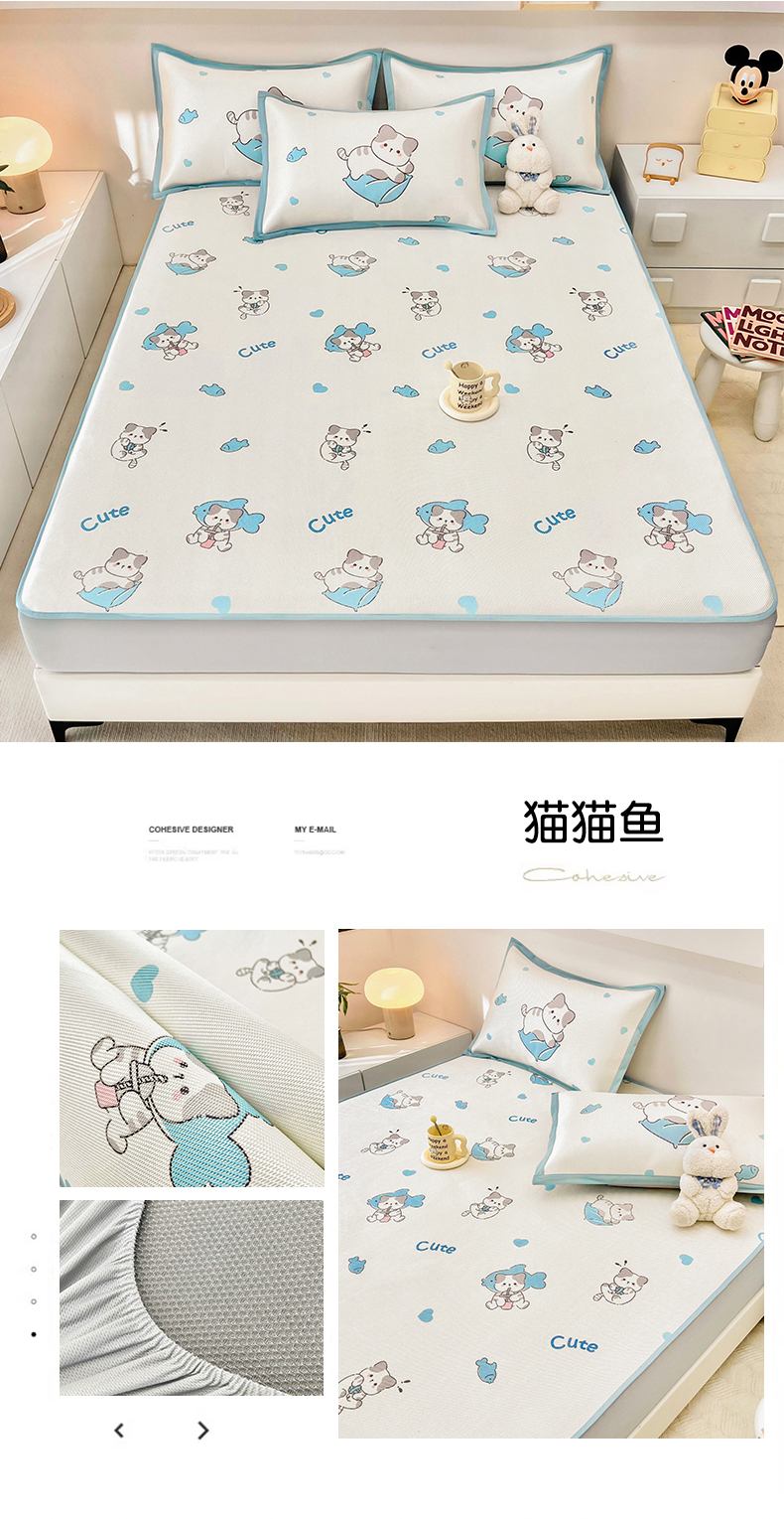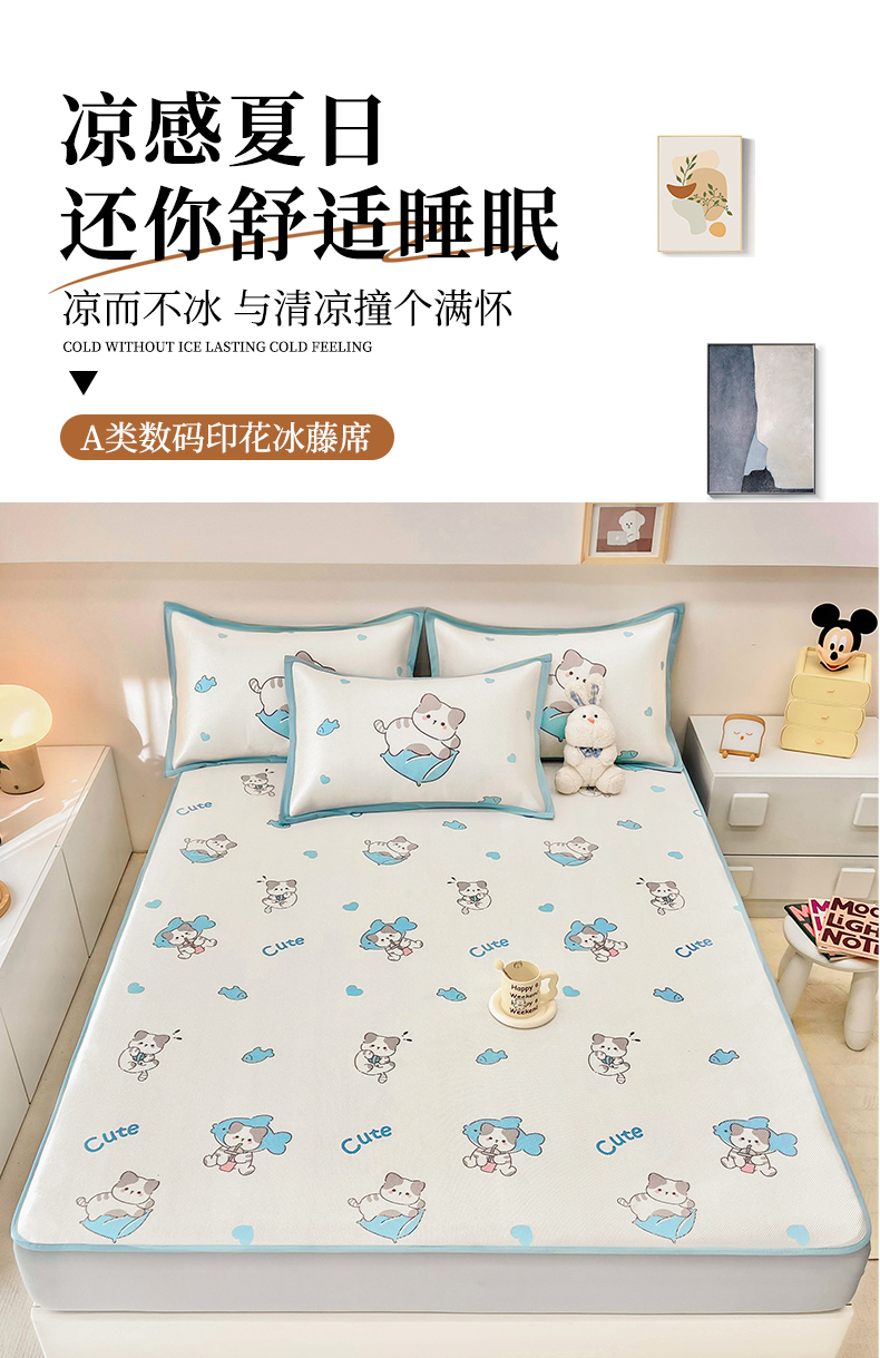 当前位置: 91家纺网 > 商品网购 > 床上用品 > 凉席 > 藤席 > 全季家居 2024新款5A抗菌小清新数码印花冰藤席 贪吃小猫(床笠款)