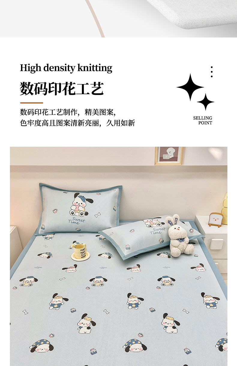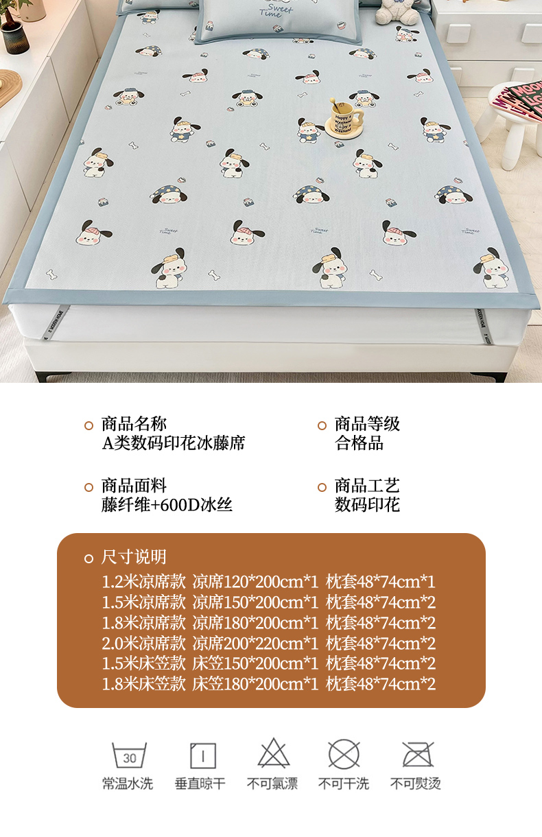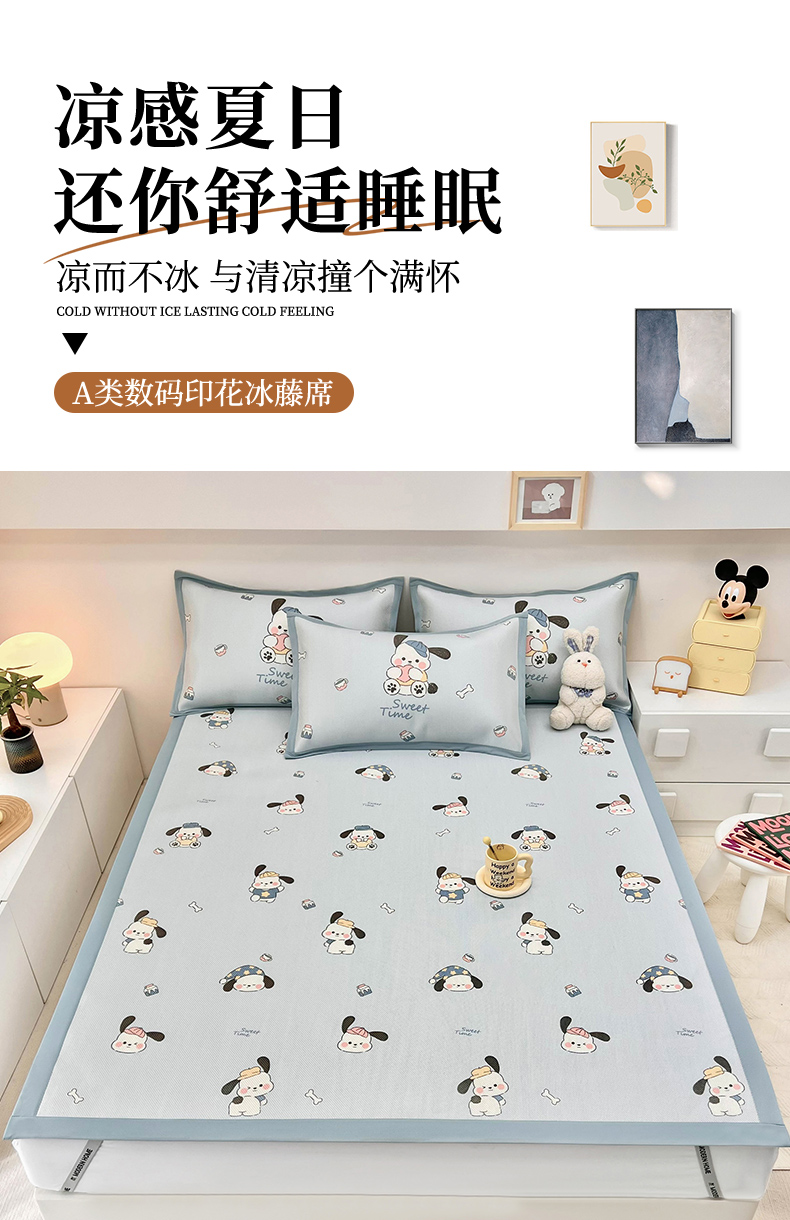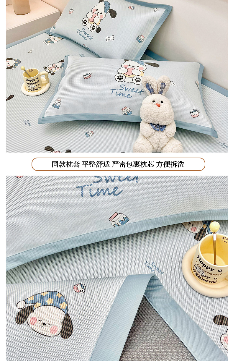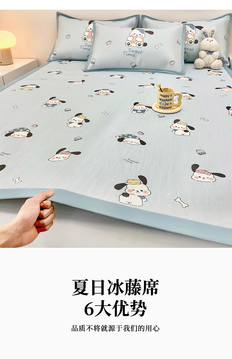 当前位置: 91家纺网 > 商品网购 > 床上用品 > 凉席 > 藤席 > 全季家居 2024新款5A抗菌小清新数码印花冰藤席 调皮小狗(床席款)