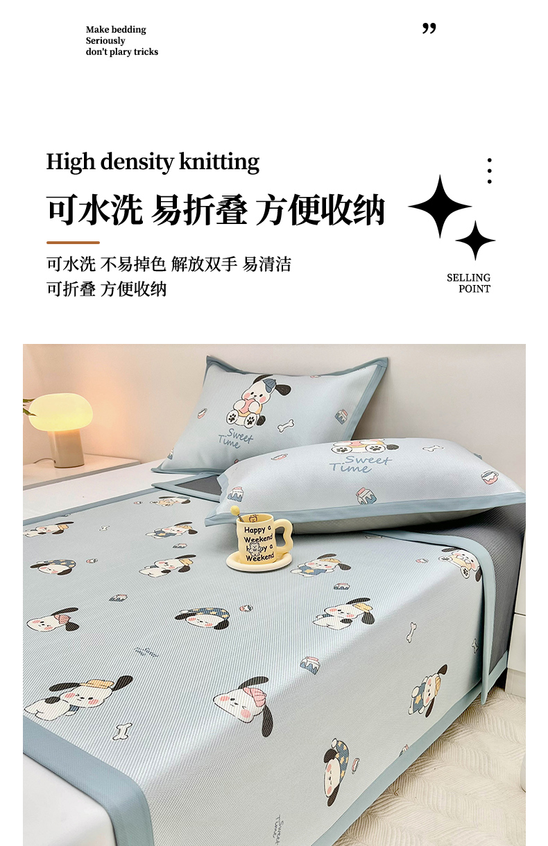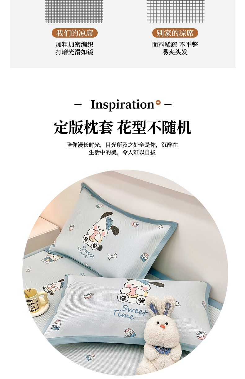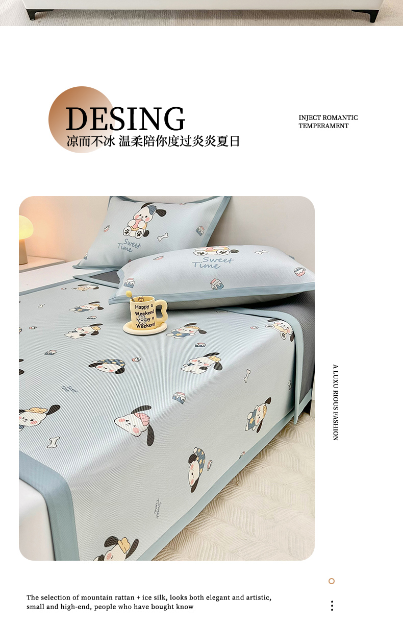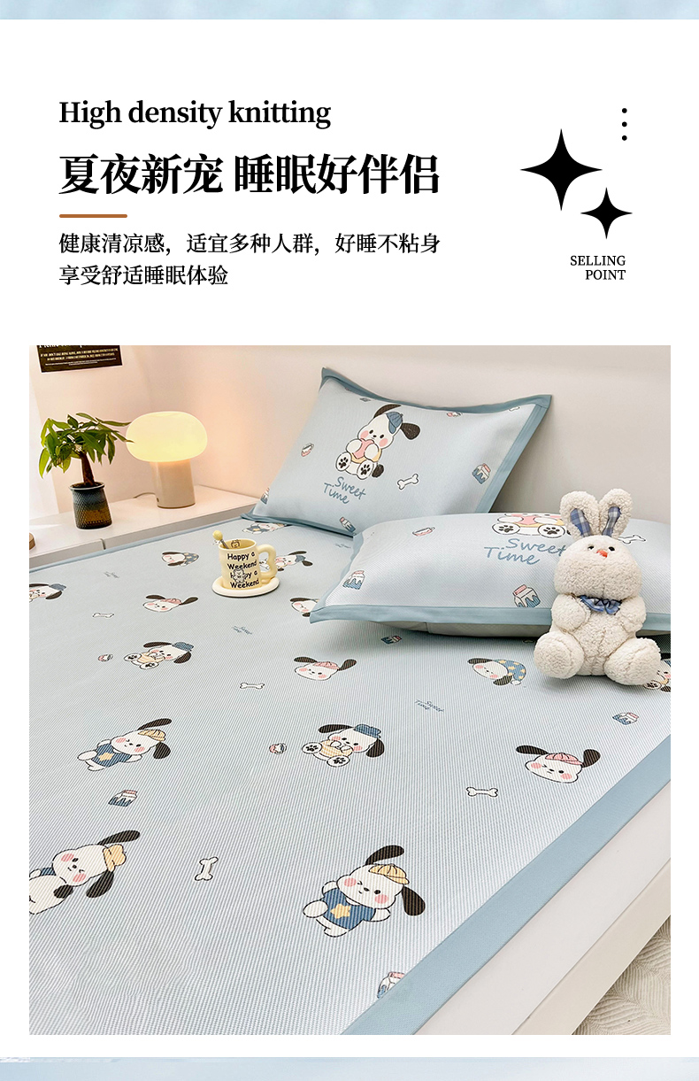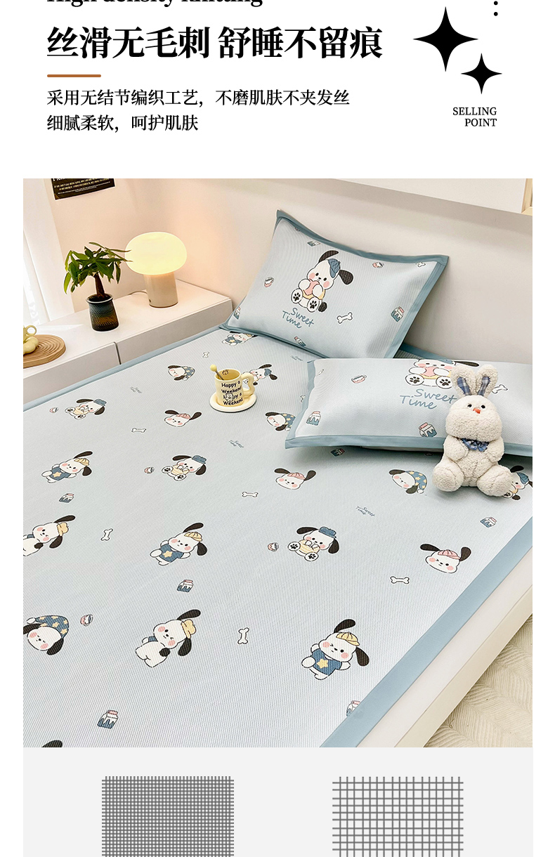 当前位置: 91家纺网 > 商品网购 > 床上用品 > 凉席 > 藤席 > 全季家居 2024新款5A抗菌小清新数码印花冰藤席 调皮小狗(床席款)