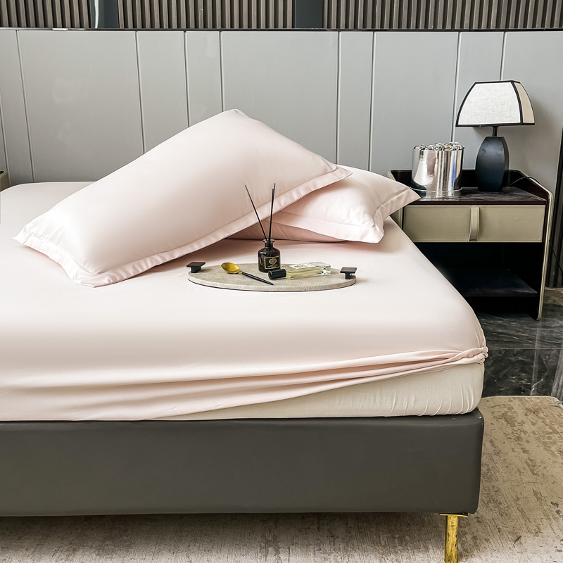 • 91家纺网 家纺一手货源 找家纺 宅家居 2024新款贡缎水洗真丝单品床笠三件套 粉玉