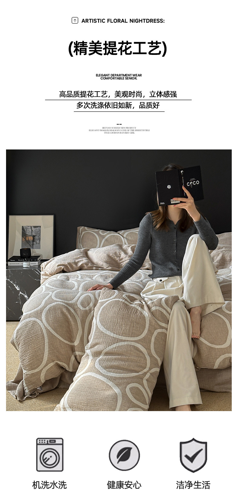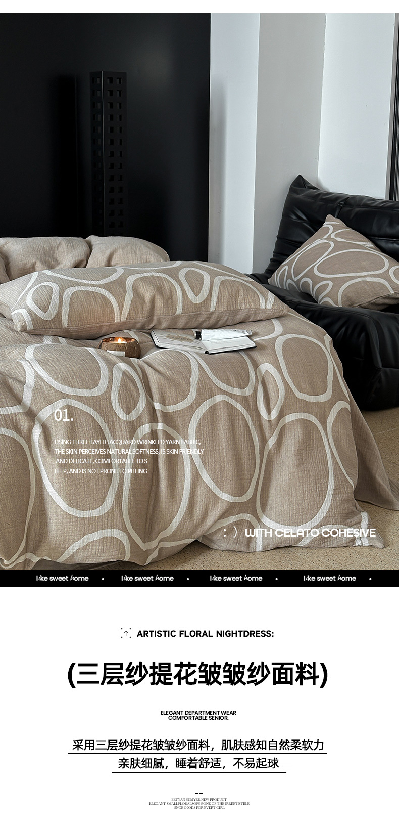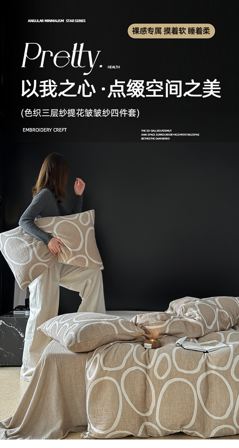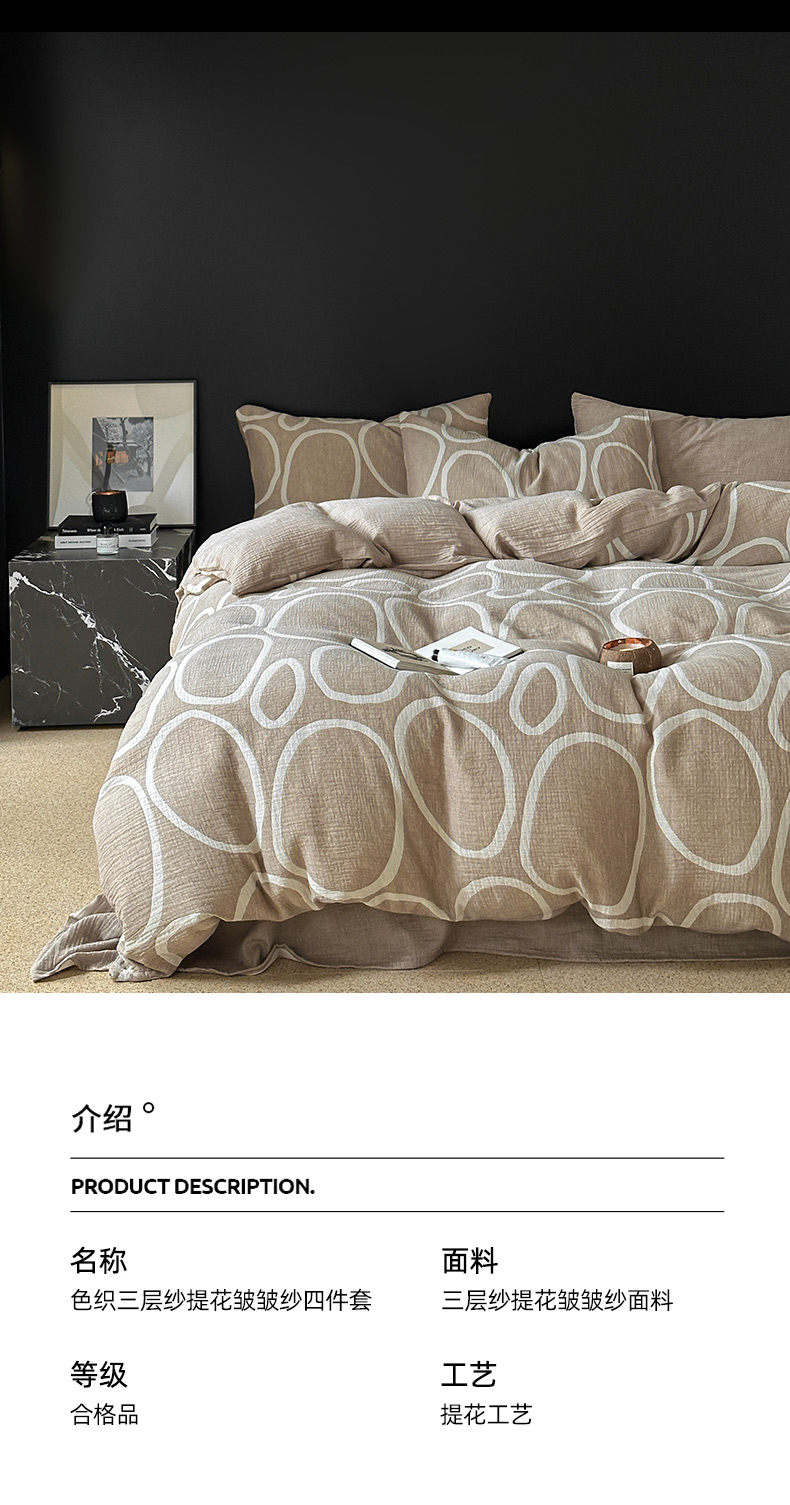 商品名称:山舍家居 2024新款三层纱提花四件套圆舞曲 圆舞曲-杏色