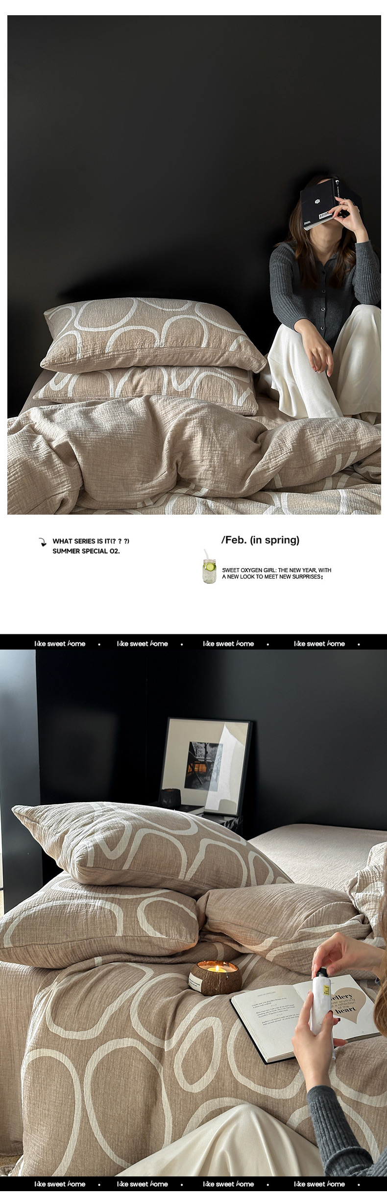 (总)山舍家居 2023新款美拉德色系双层纱四件套,泥灰色,巧克力棕,太妃糖,杏仁色,夜阑,燕麦,沙茶栗