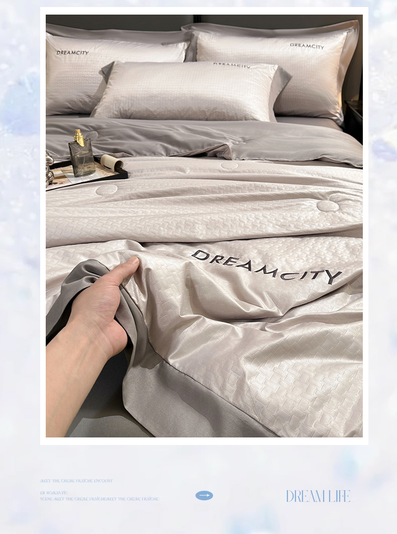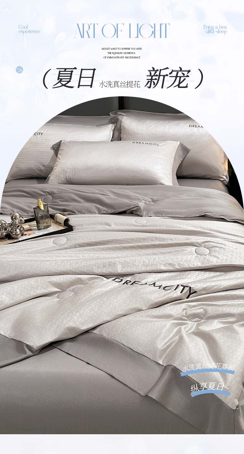 (总)古吉梦 2024新款水洗真丝提花夏被--迪梦,宾利蓝+山灰,高级灰+奶茶,海青+山灰,奶昔白+奶茶,浅豆沙+山灰,山灰+中灰,天空蓝+海青,星空蓝+山灰,中灰+山灰