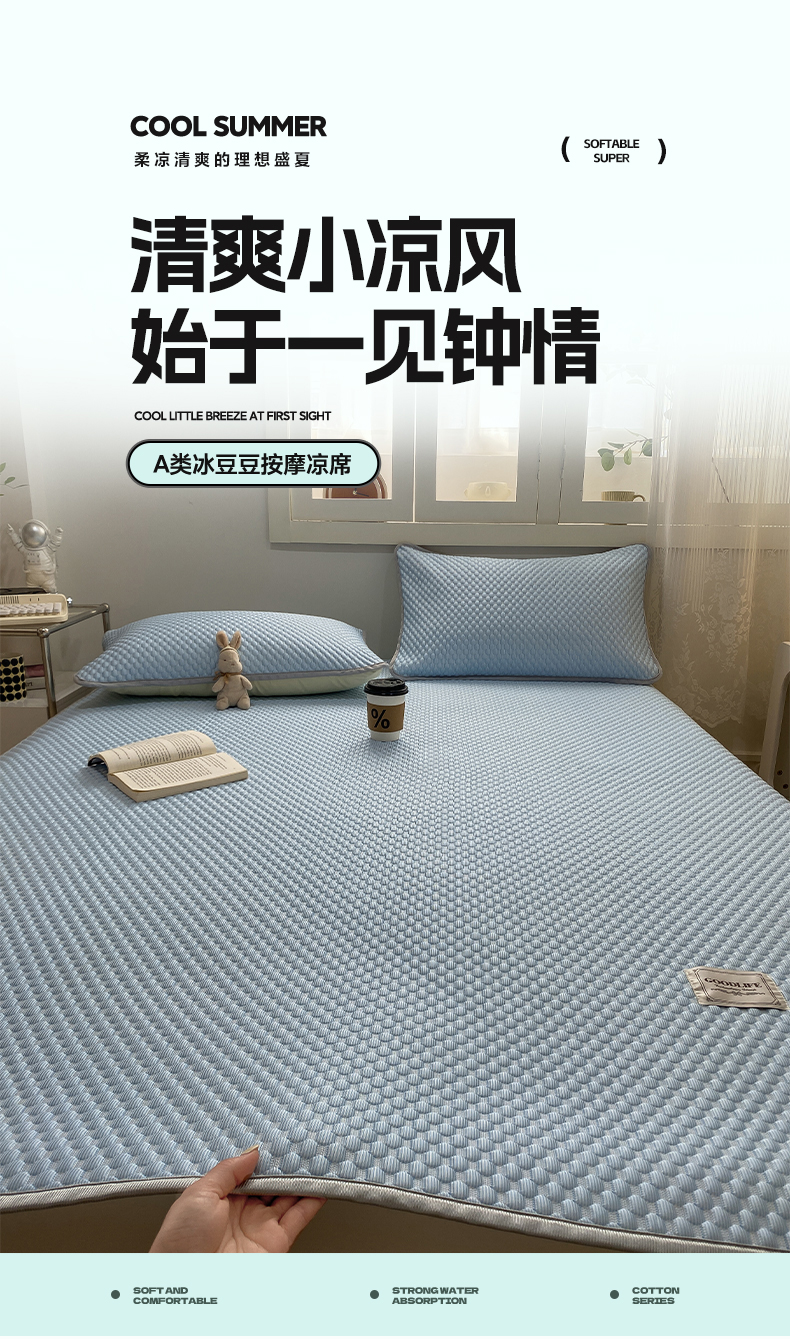 当前位置: 91家纺网 > 商品网购 > 床上用品 > 凉席 > 凉席套件 > 眠势力 2025新款冰豆豆凉席冷感凉豆豆软凉席三件套 豆豆兰-贴标床单款