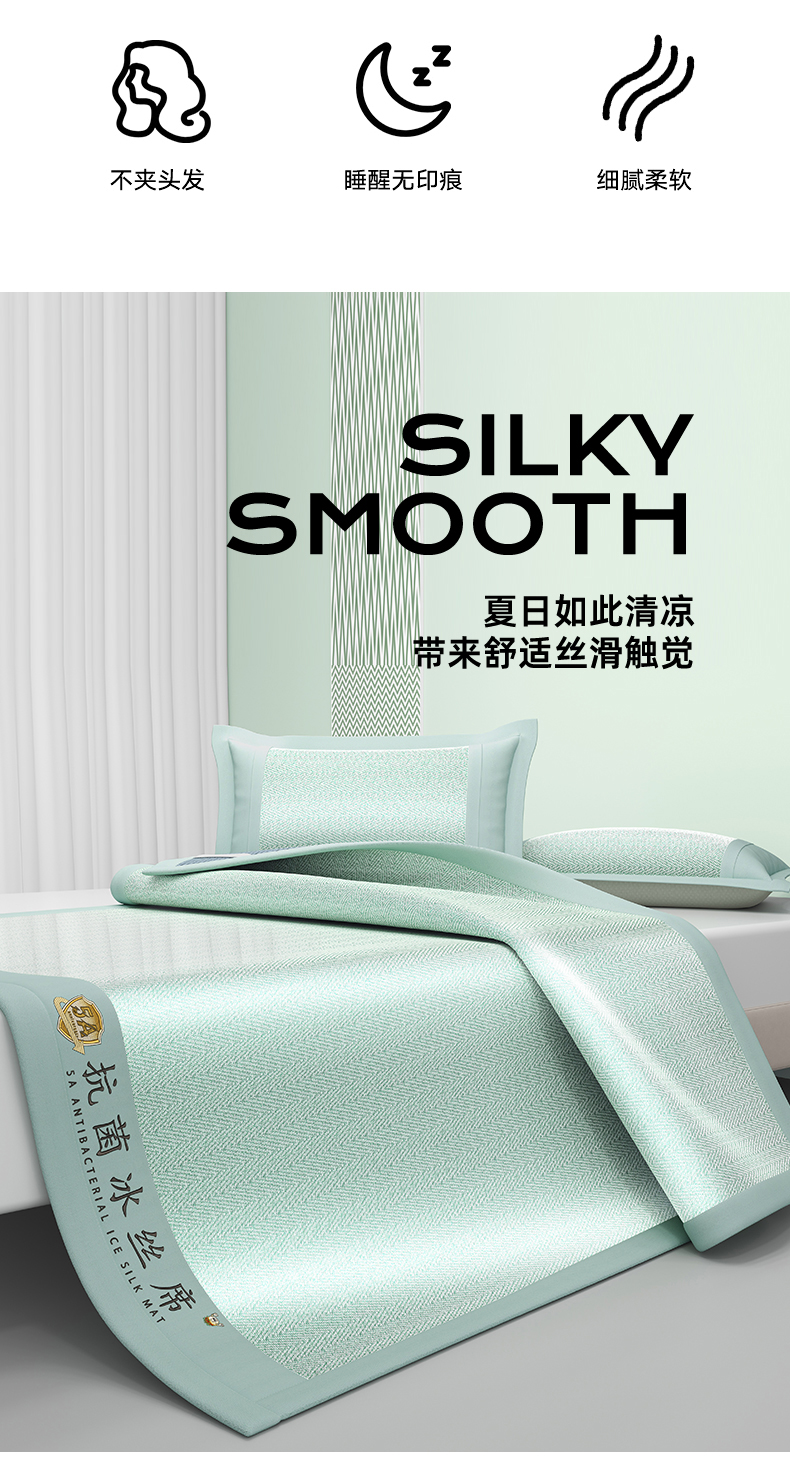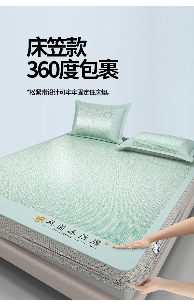 商品名称:鑫姿席业 2025新款亲肤舒适5A抗菌冰丝席 云水绿(床笠款)