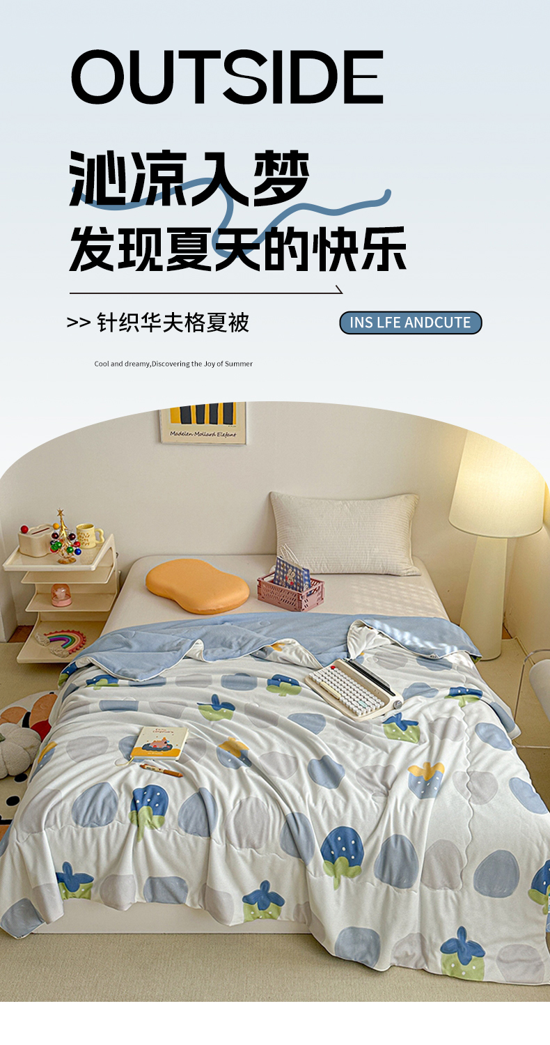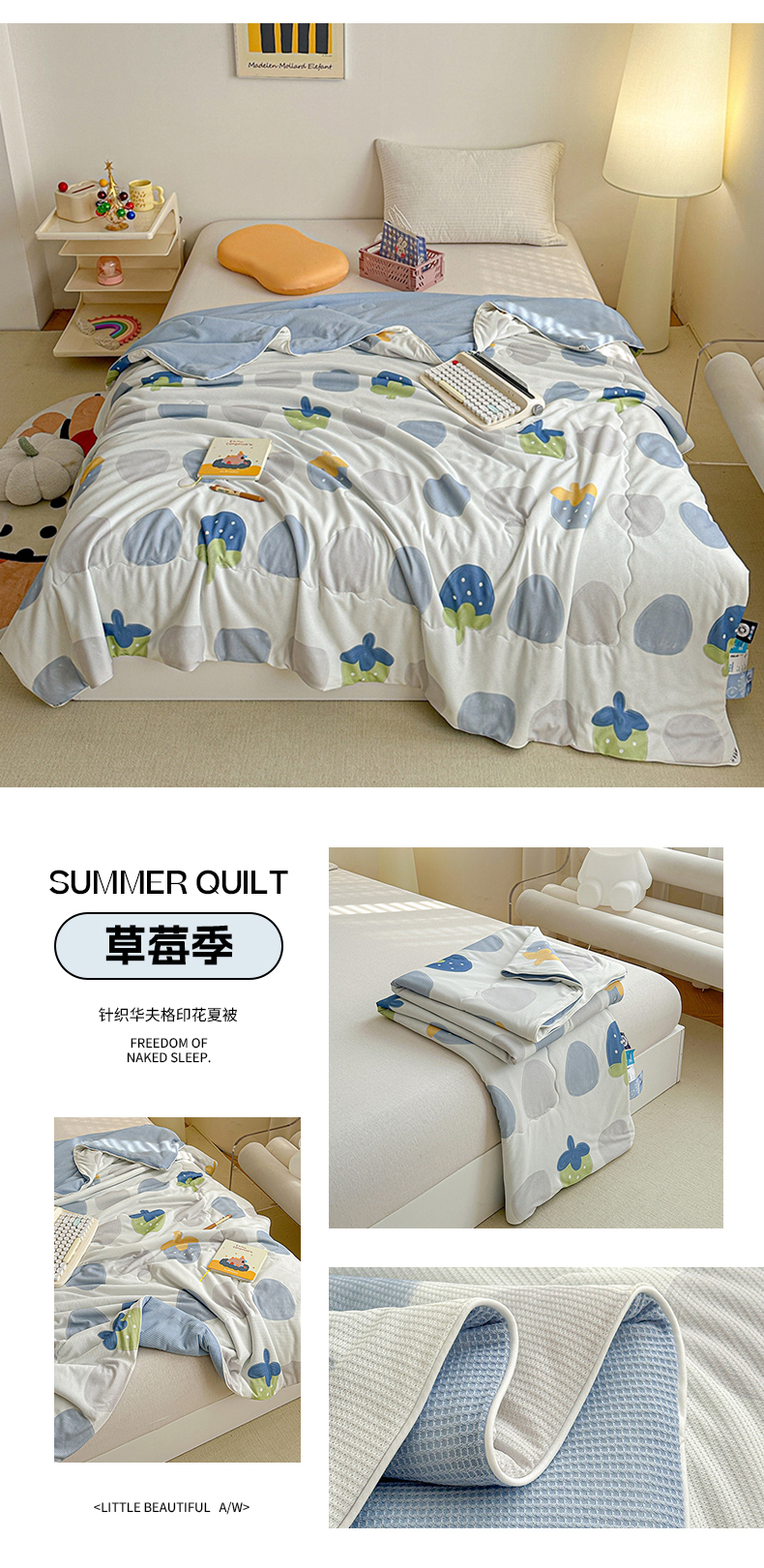 商品名称:源舜家纺 2025新款印花系列针织华夫格夏被 草莓季