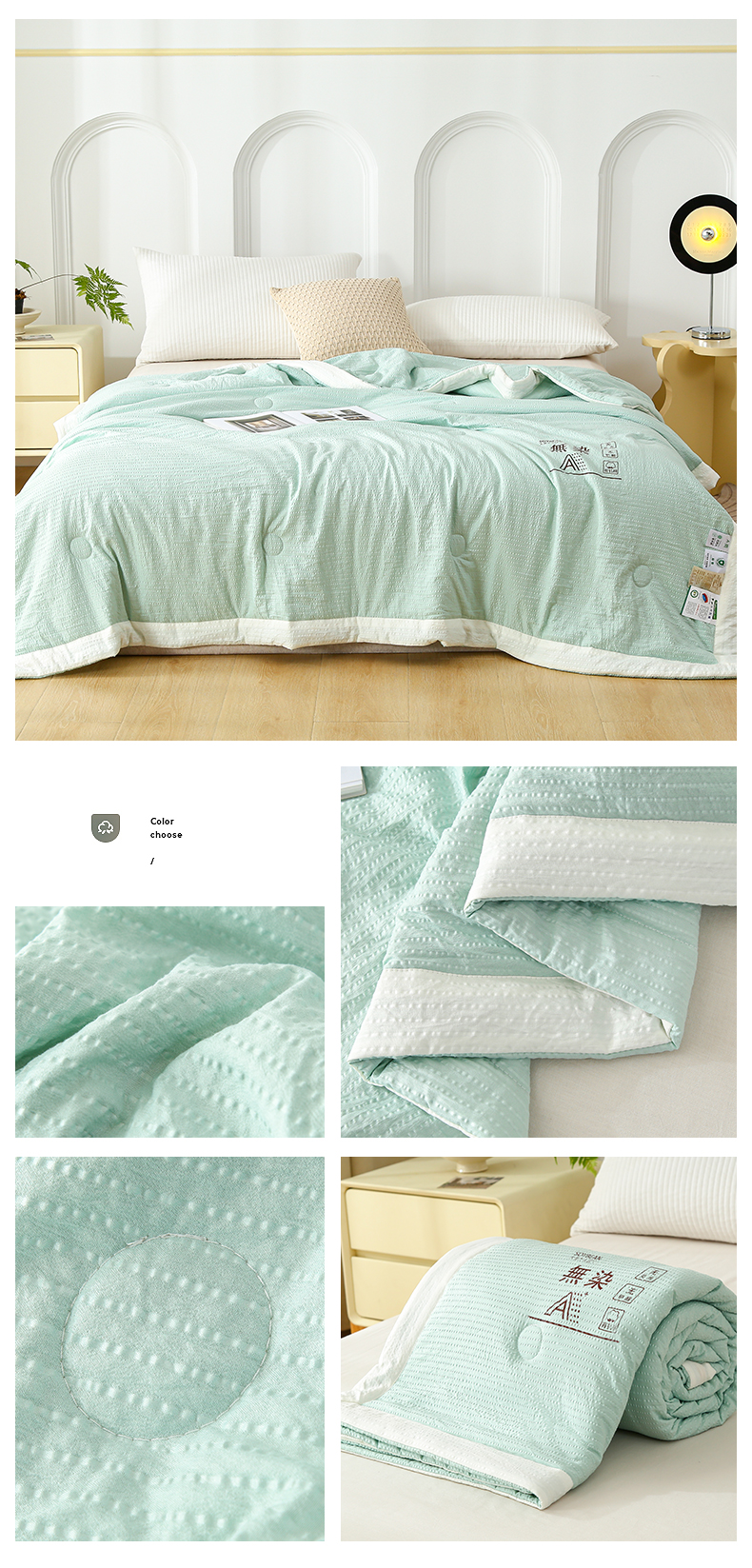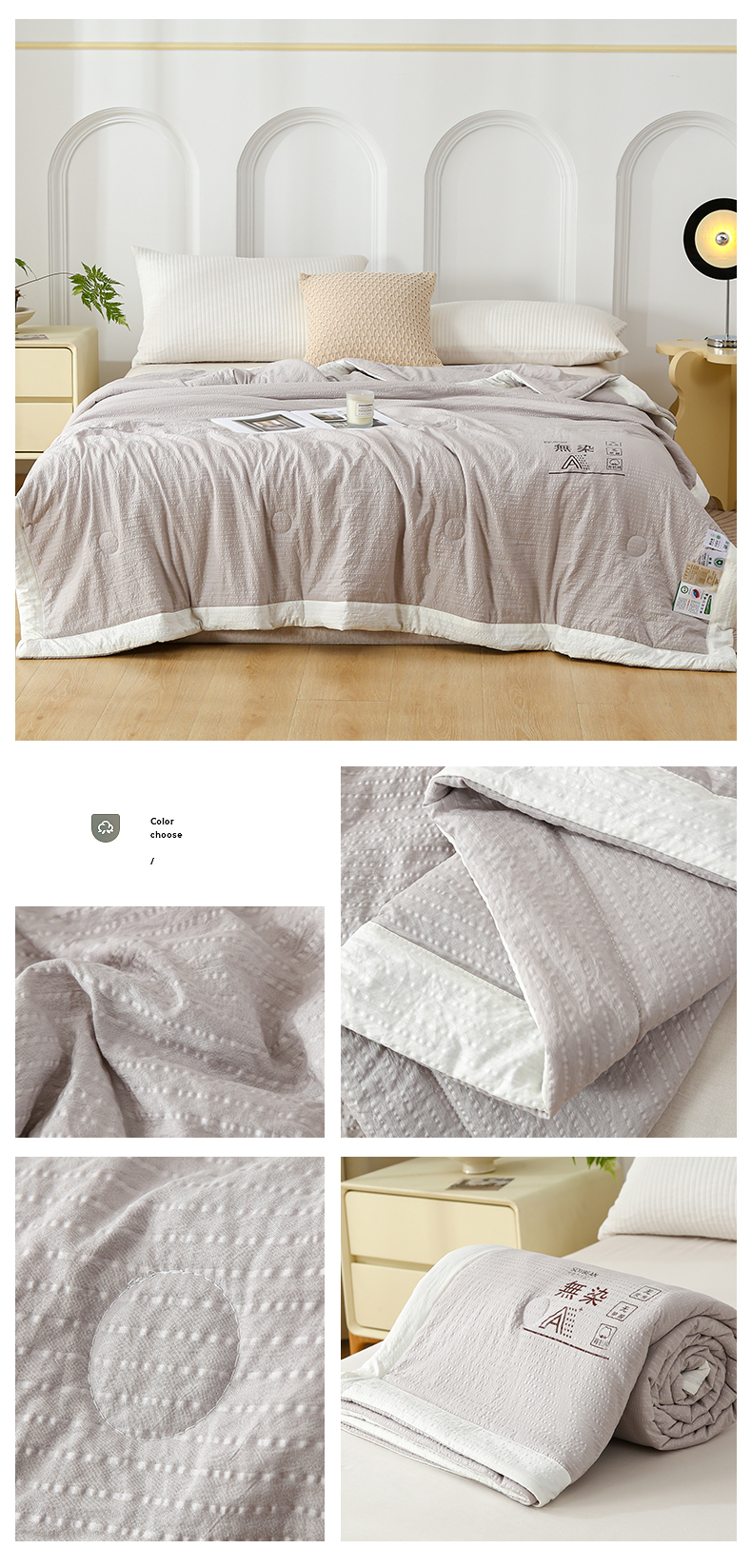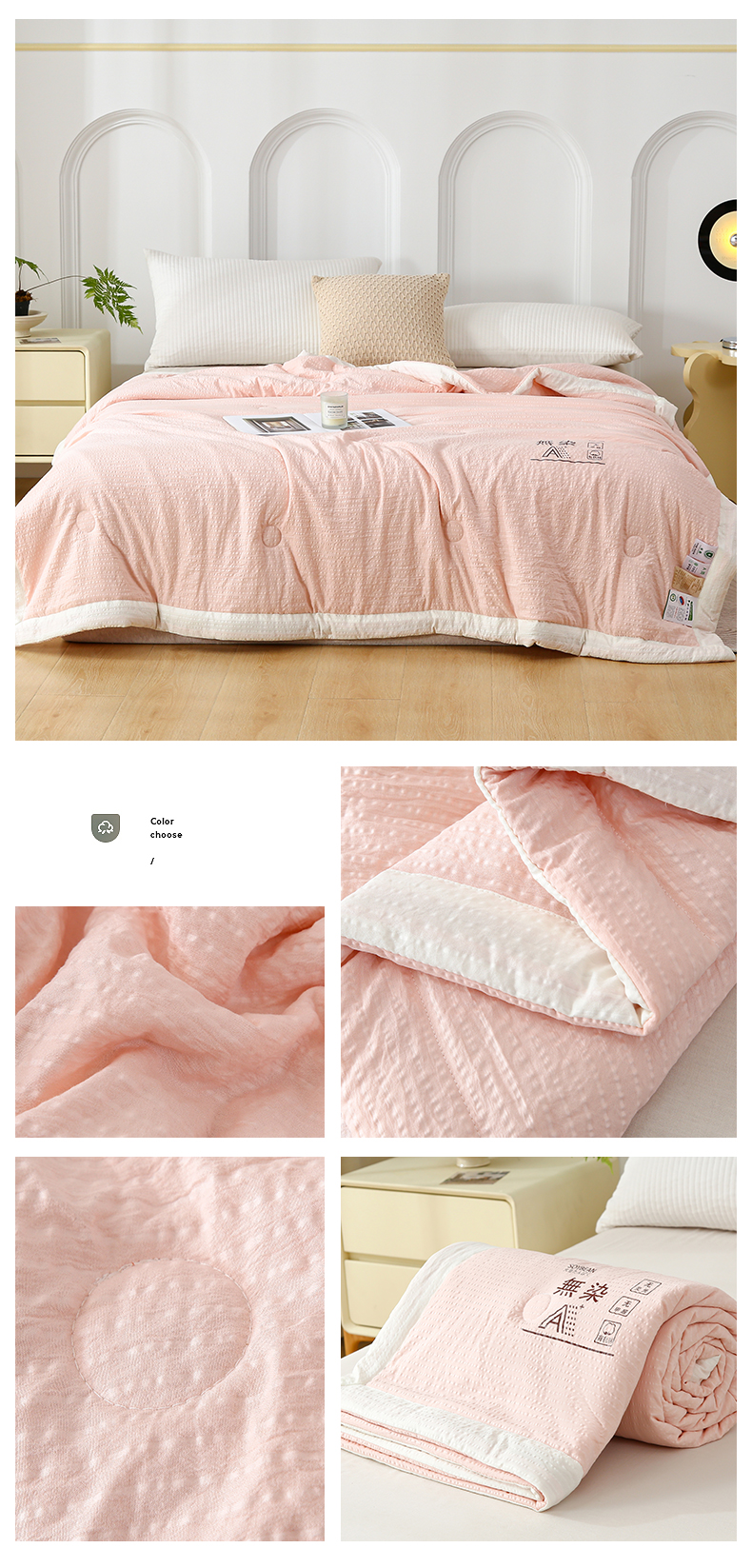 (总)江山被业 2025新款泡泡纱大豆夏被,粉色,灰色,米黄,水绿