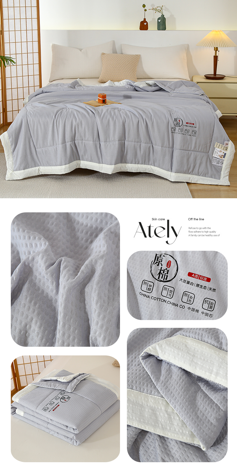 (总)江山被业 2025新款华夫格提花针织棉大豆纤维夏被,奶油白,山茶粉,水波绿,绅士灰