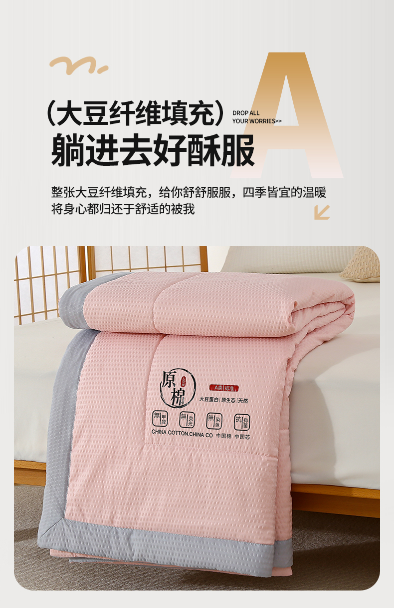 (总)江山被业 2025新款泡泡纱大豆夏被,粉色,灰色,米黄,水绿