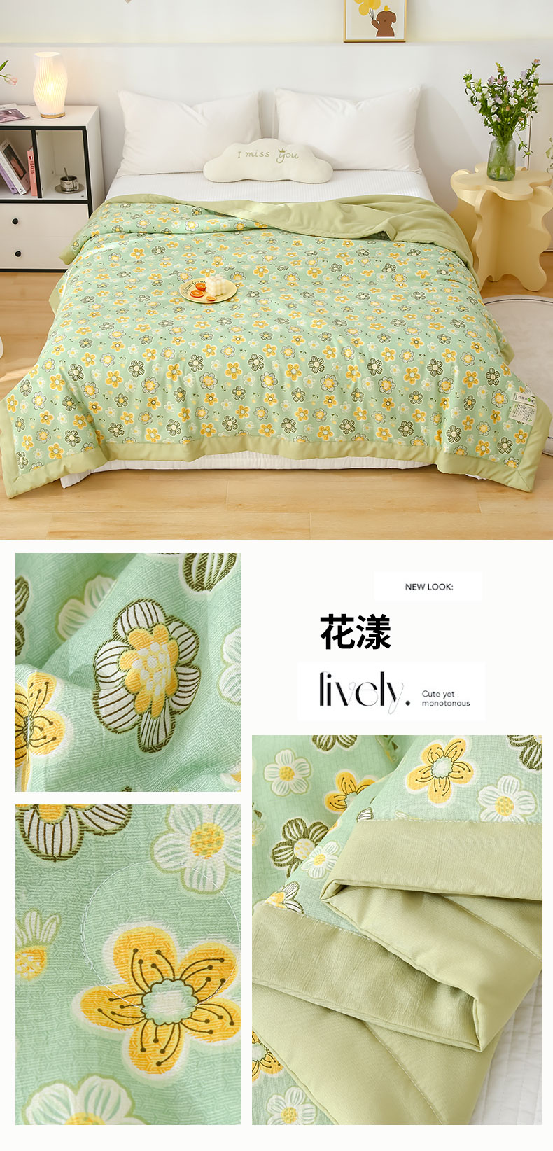 江山被业 2025新款水洗棉麻双层纱大豆夏凉被 花漾