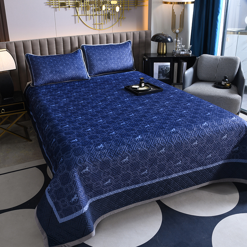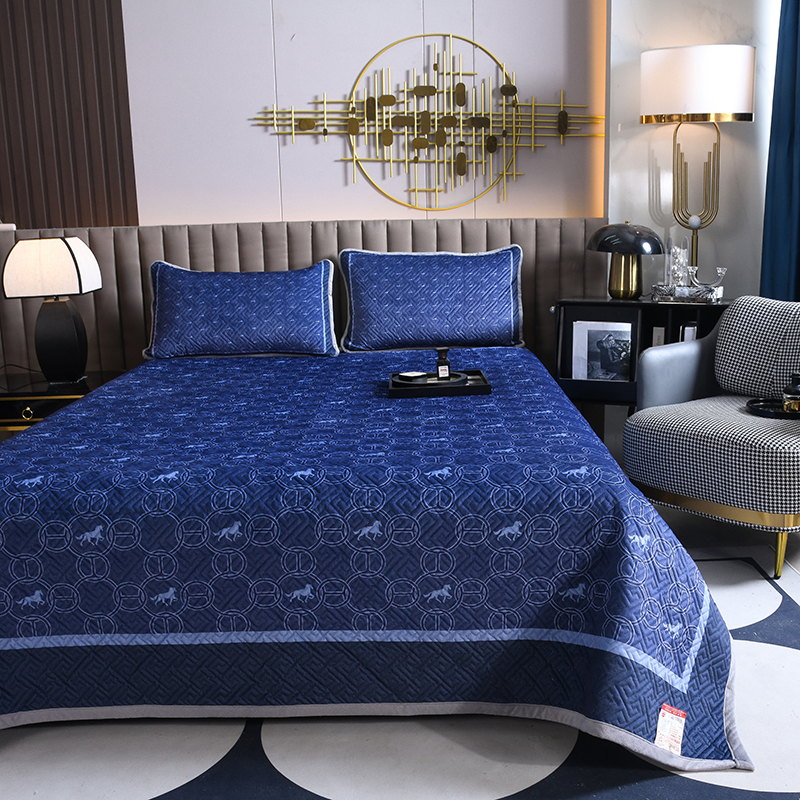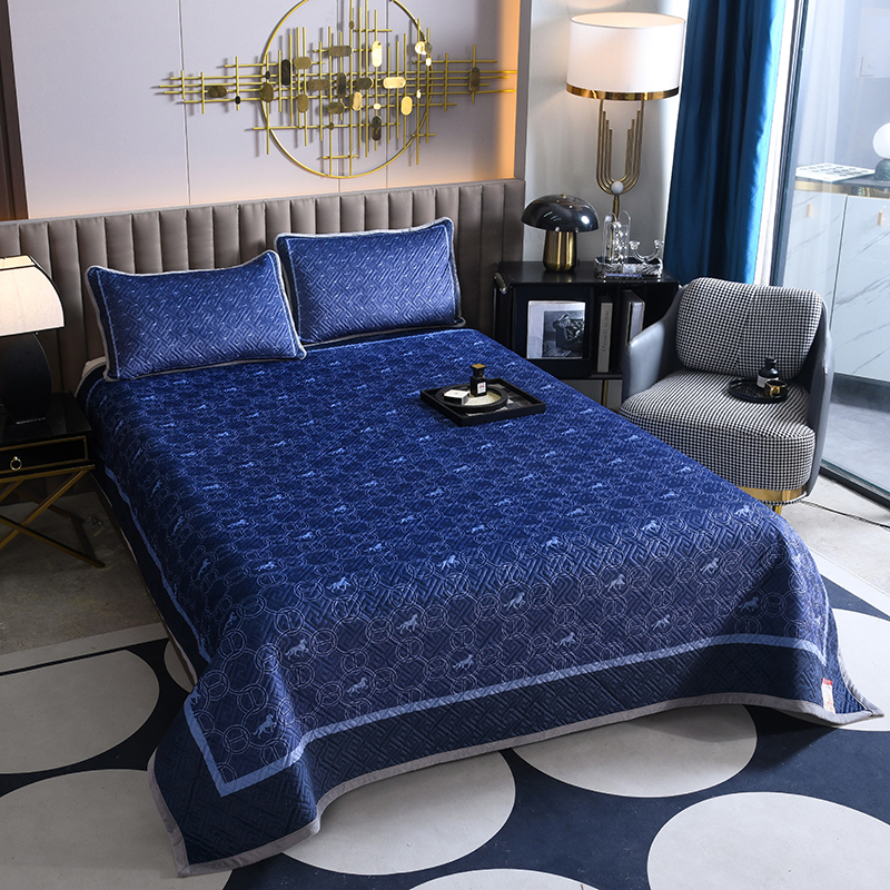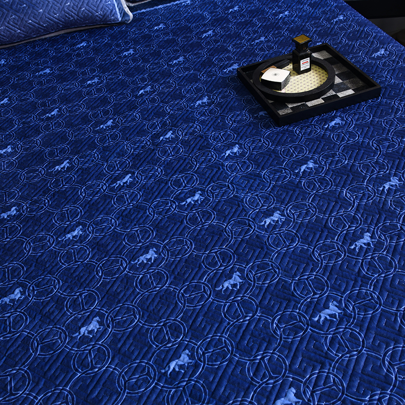 爵仕家纺 2025新款A面宝宝绒B面磨毛布四季通用床盖 蓝马