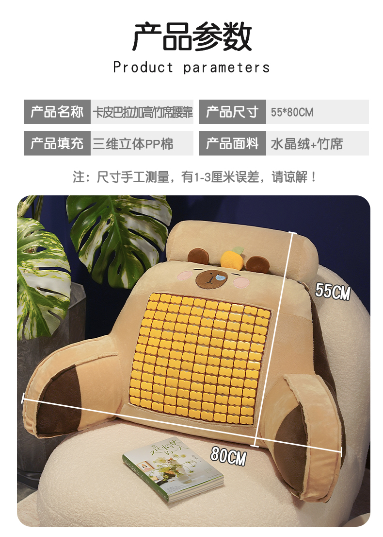 当前位置: 91家纺网 > 商品网购 > 居家日用 > 靠垫/抱枕 > (总)仟亿莱 2024新款卡皮巴拉加高竹席拥抱式腰靠