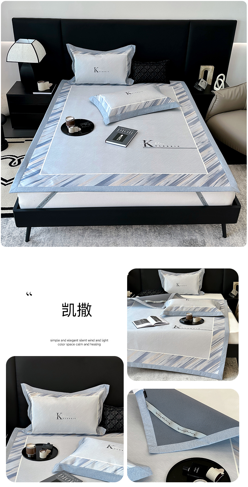 商品名称:JUICY 橘滋家纺 2024新款A类数码印花抑菌冰丝床席款床笠款软凉席套件 凯撒(平席款)