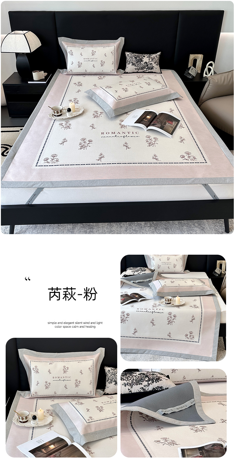 商品名称:JUICY 橘滋家纺 2024新款A类数码印花抑菌冰丝床席款床笠款软凉席套件 芮萩-粉(平席款)