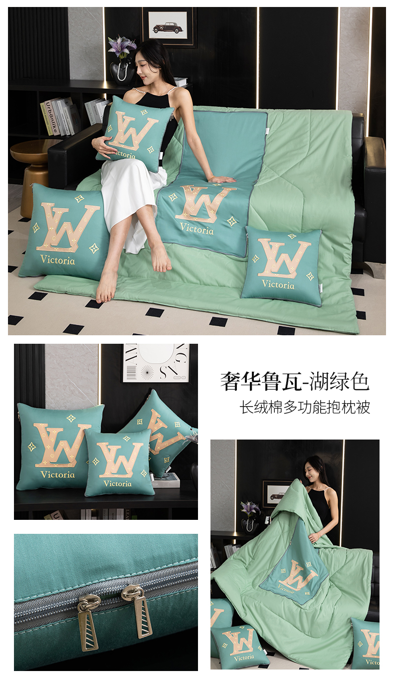 商品名称:吉利家居 2024新款长绒棉多功能抱枕被-奢华鲁瓦 湖绿色
