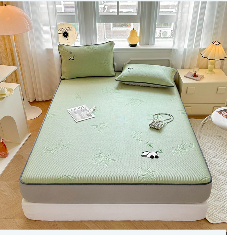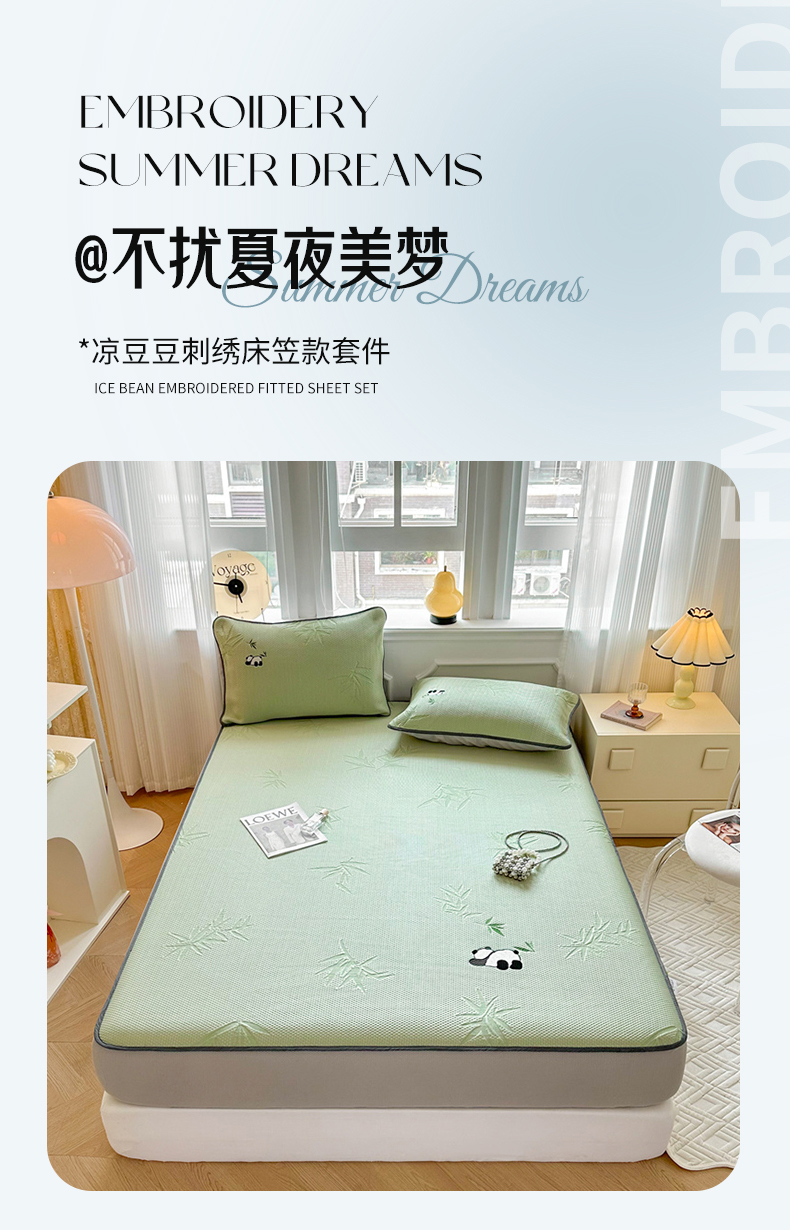 首尔 2024新款凉豆豆席刺绣款冰丝席 熊猫绿