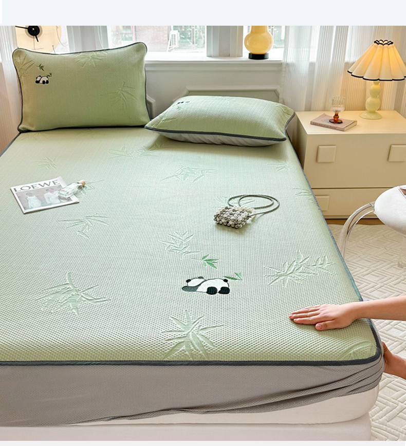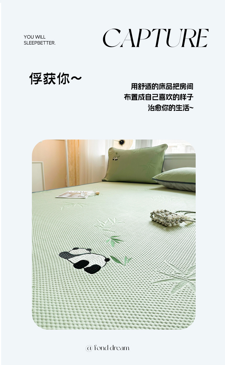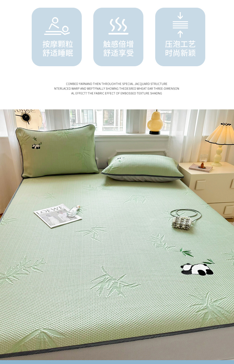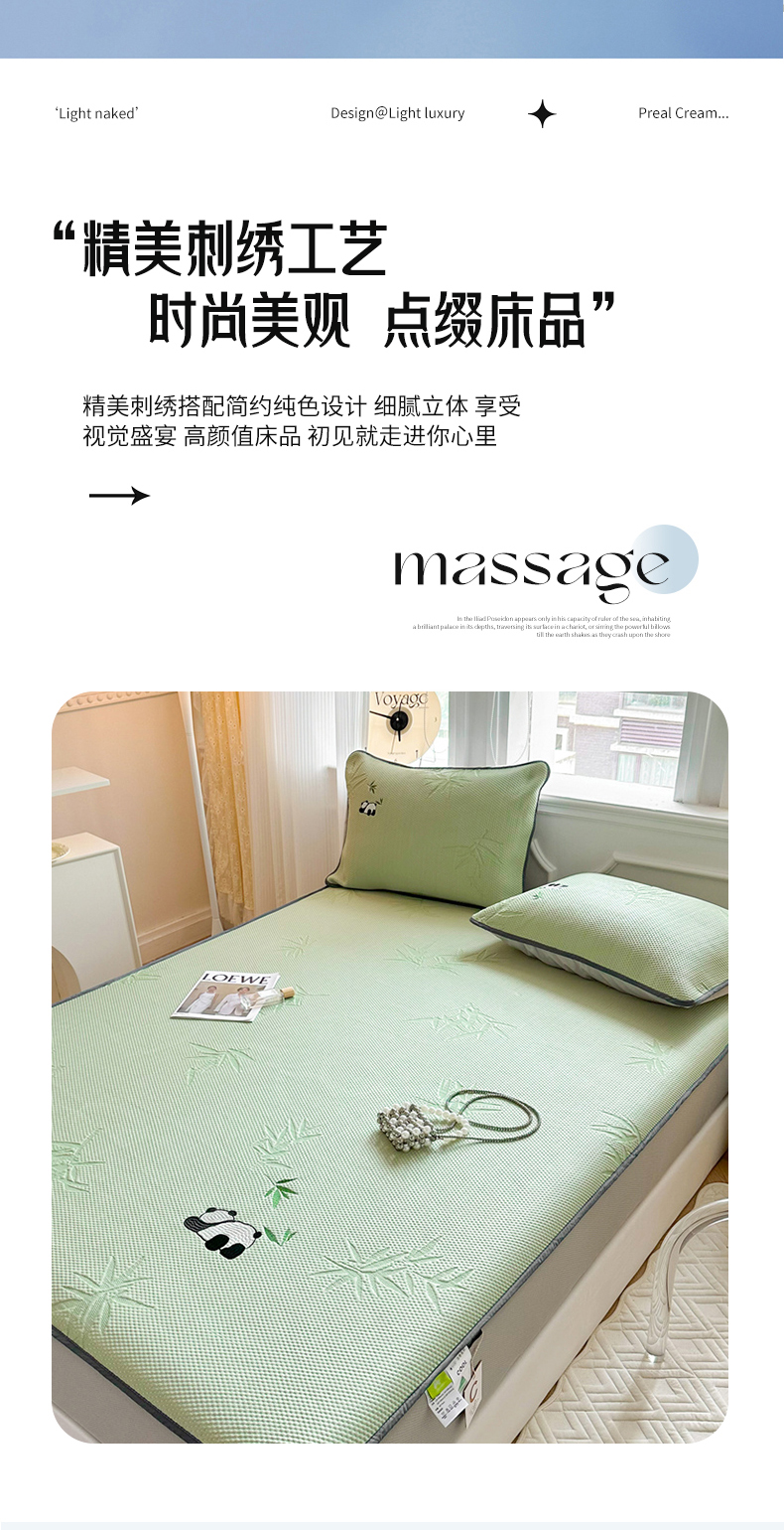 商品名称:首尔 2024新款凉豆豆席刺绣款冰丝席 熊猫绿