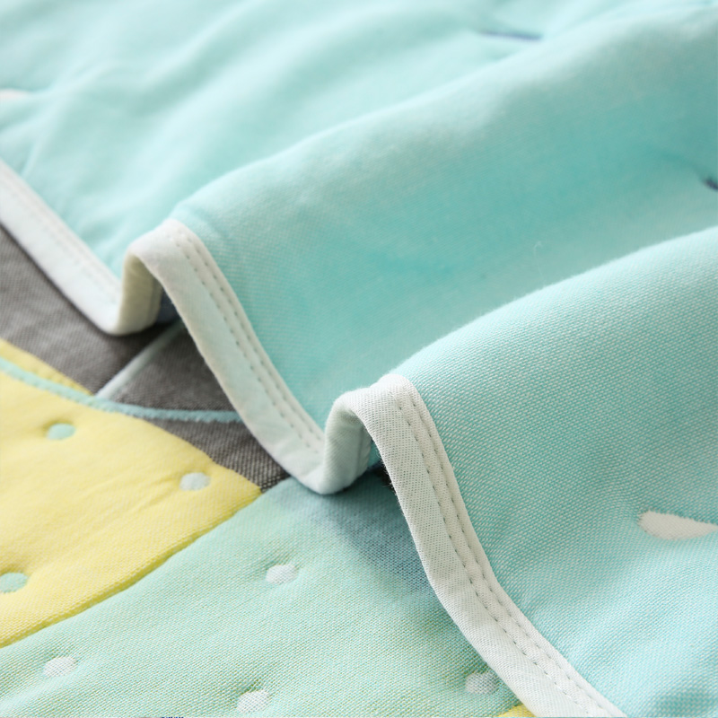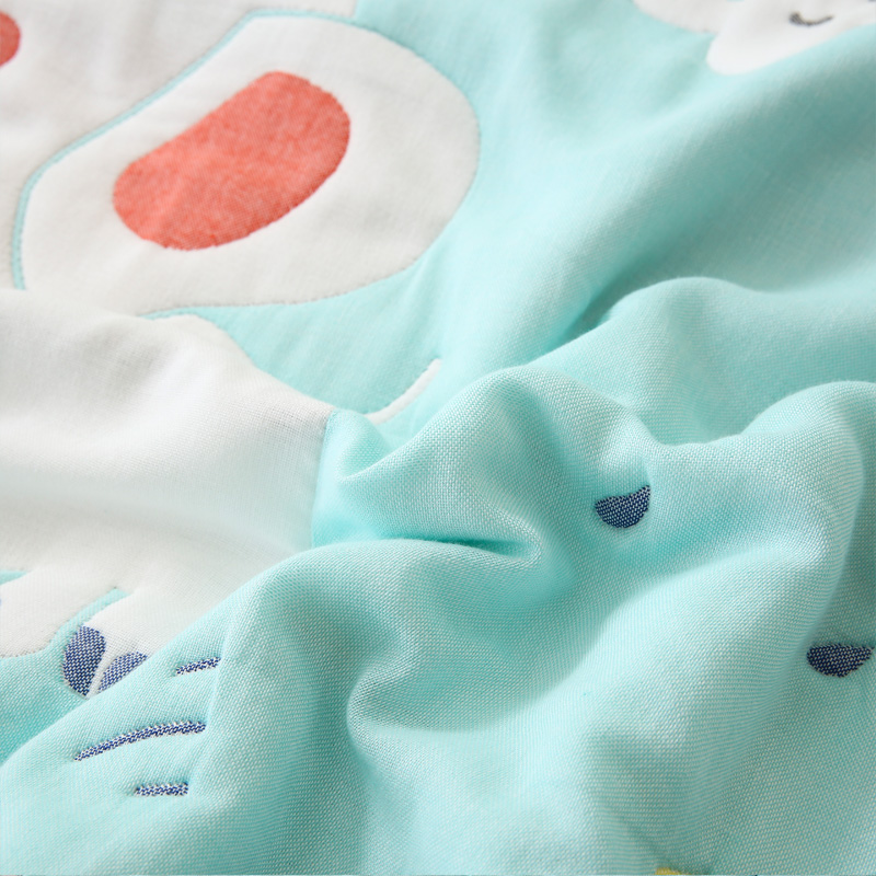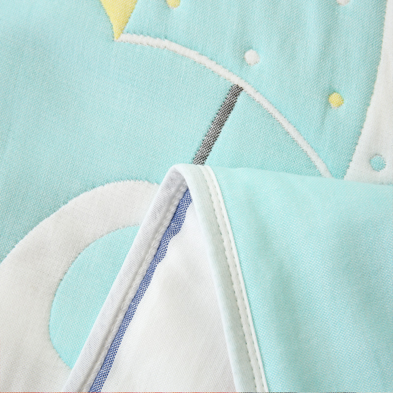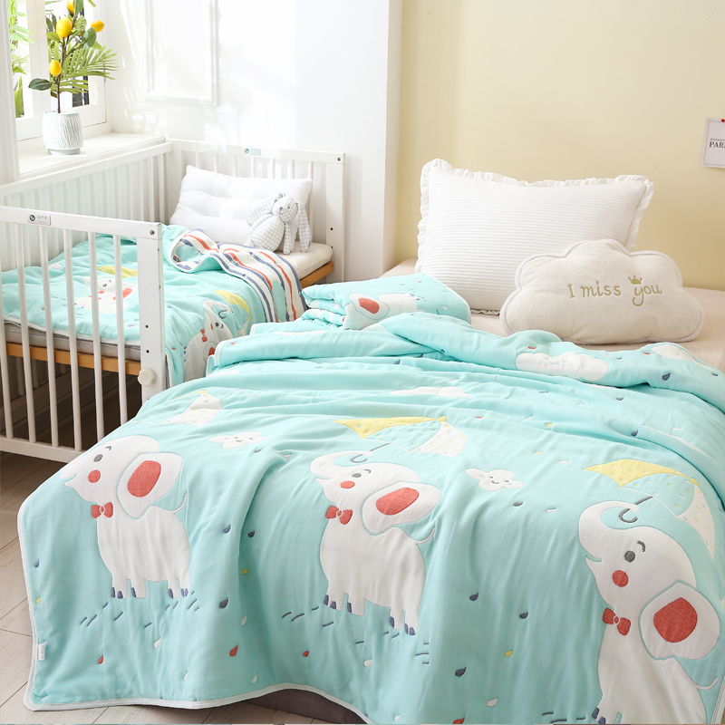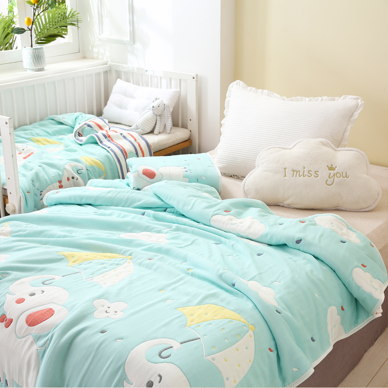 朴尔家纺-毛巾被 2024年全棉十层纱布加厚儿童盖被毛巾被 打伞的小象绿