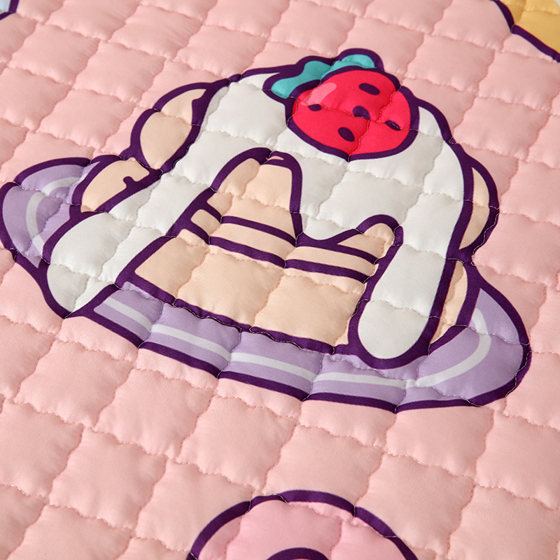 (总)沁童儿童用品店 2025新款学生宿舍牛奶冰丝凉席两件套,繁花似锦,绿意盎然,小熊草莓,一举夺葵
