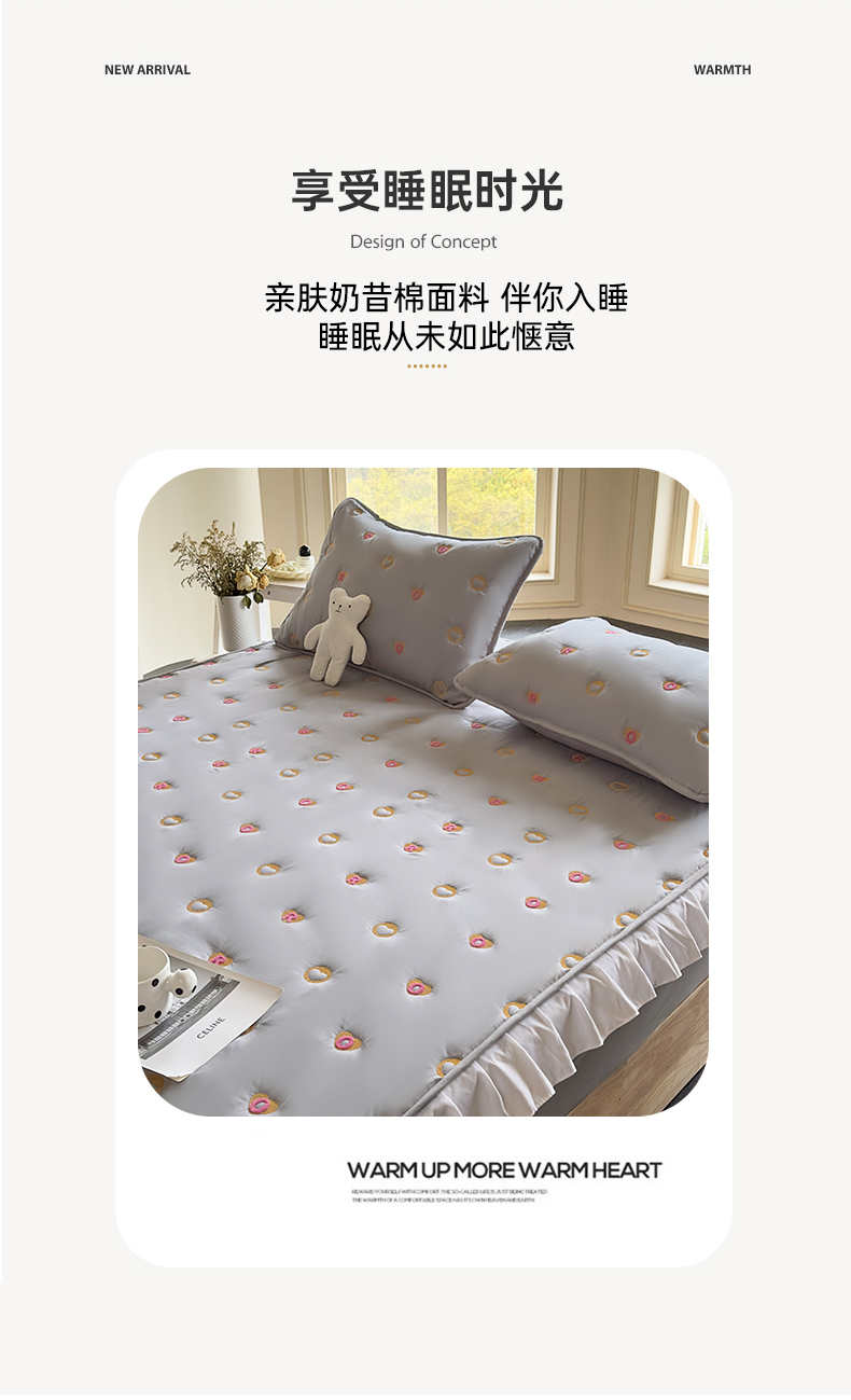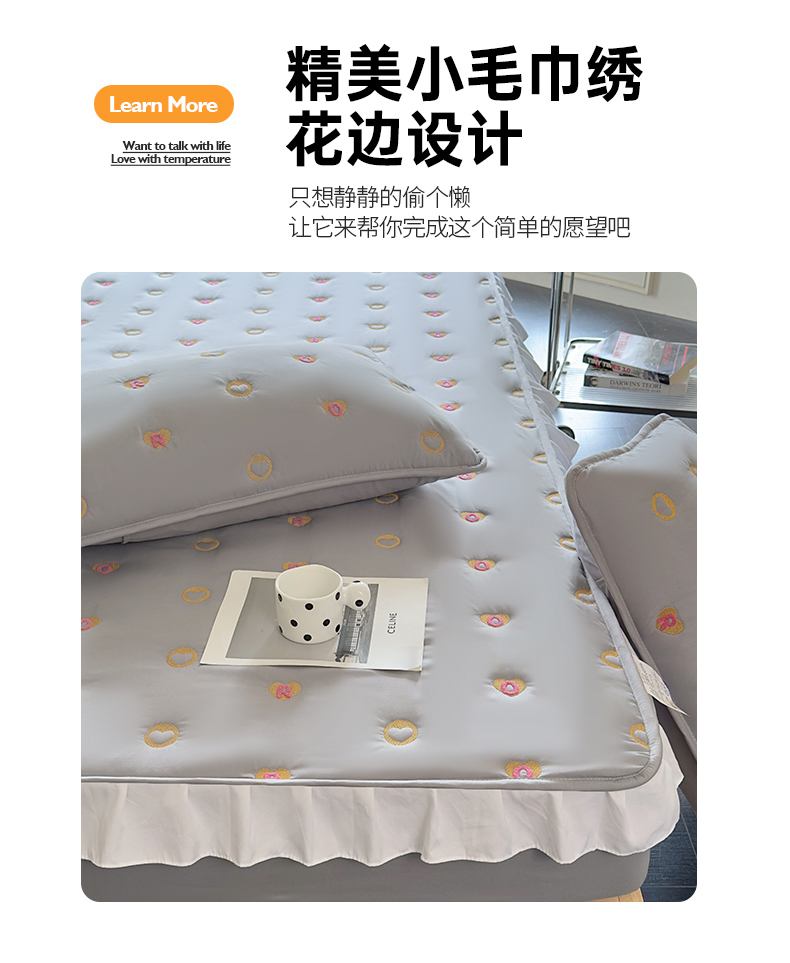 尊康家纺(原磊科) 2024新款奶昔棉小毛巾绣花边床笠 小毛巾绣-绅士灰
