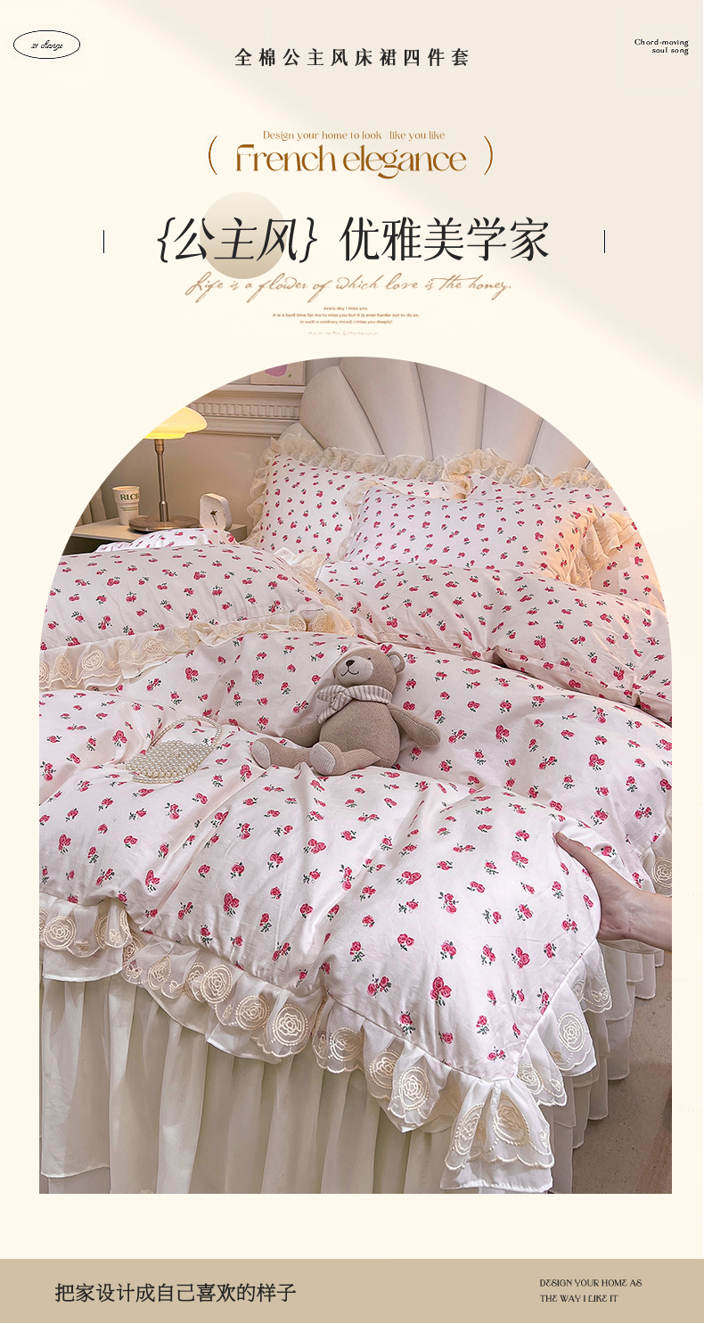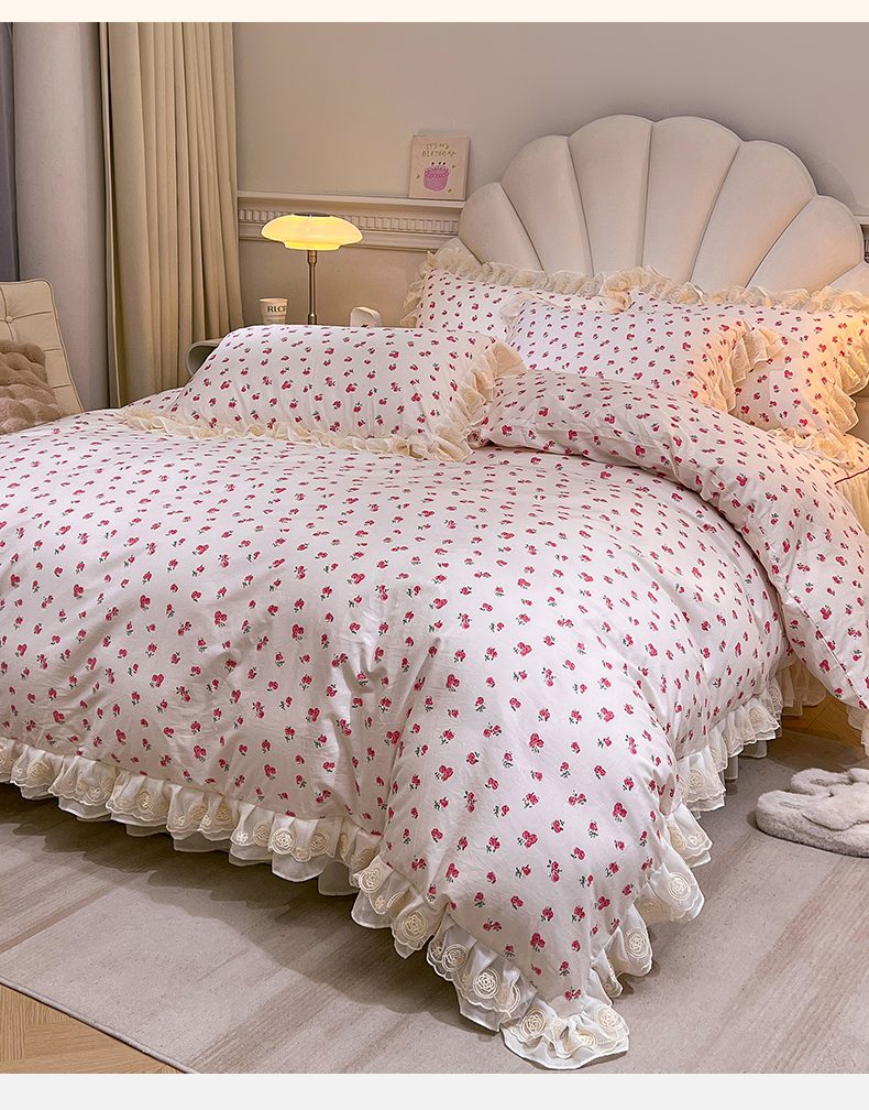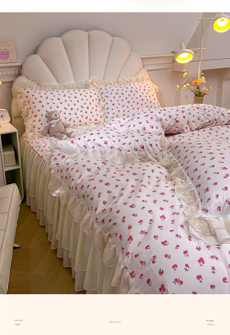 当前位置: 91家纺网 > 商品网购 > 床品套件 > 四件套 > 全棉普通四件套 > 恒爱家纺 2024新款梦幻情缘全棉公主风四件套 樱花雨