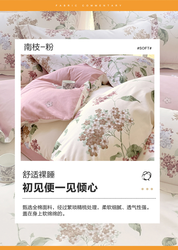 当前位置: 91家纺网 > 商品网购 > 床品套件 > 四件套 > 全棉普通四件套 > 星期三家纺2024新款全棉13372品质四件套(加老板微信有会员价) 南枝-粉
