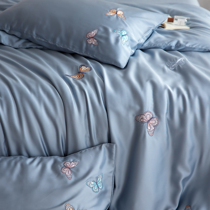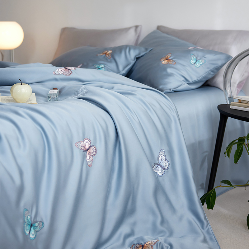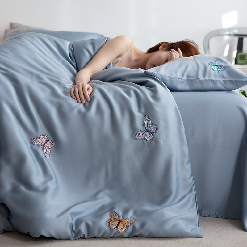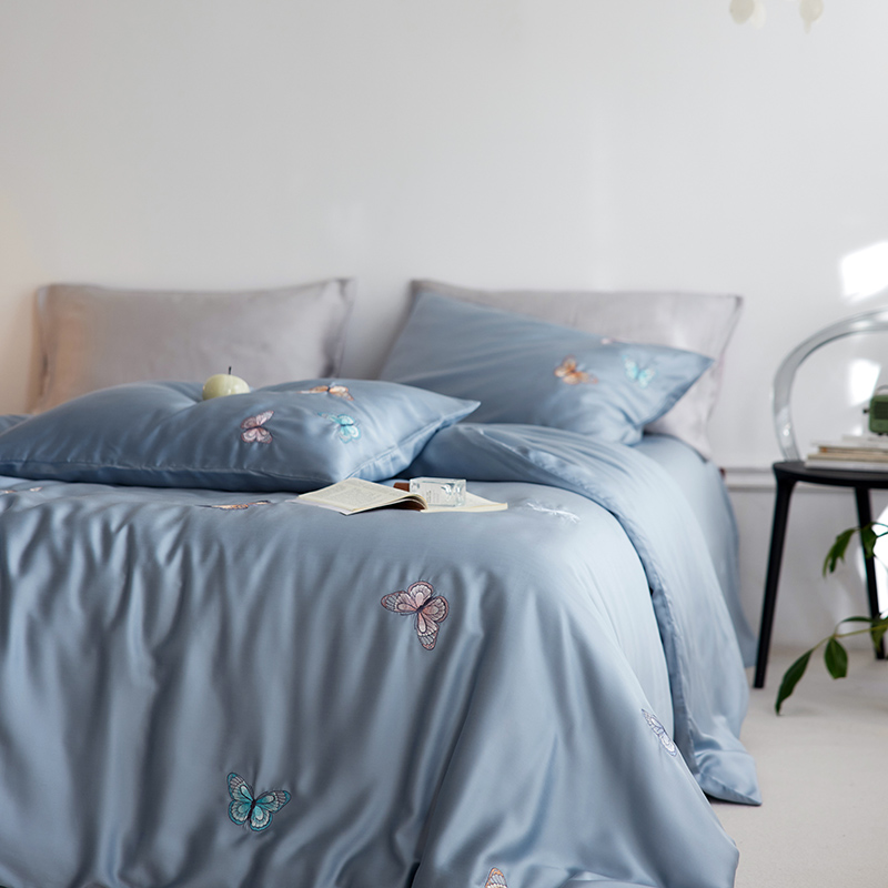 初拾 2024新款A类天丝棉刺绣系列四件套-法拉 法拉-蓝