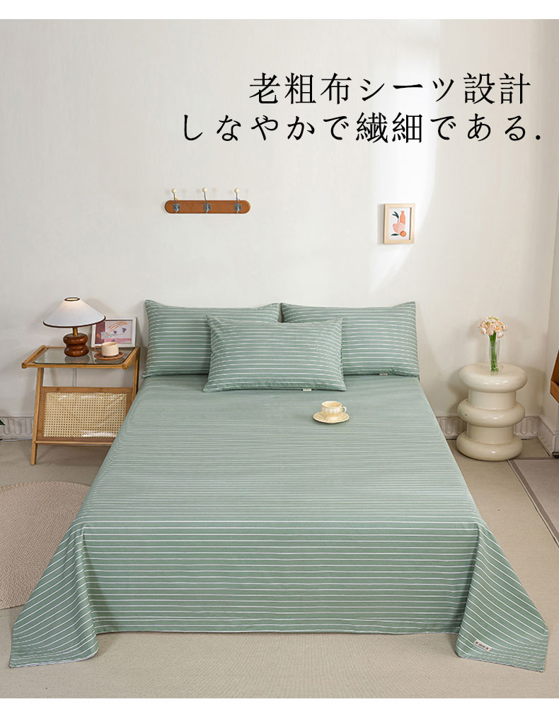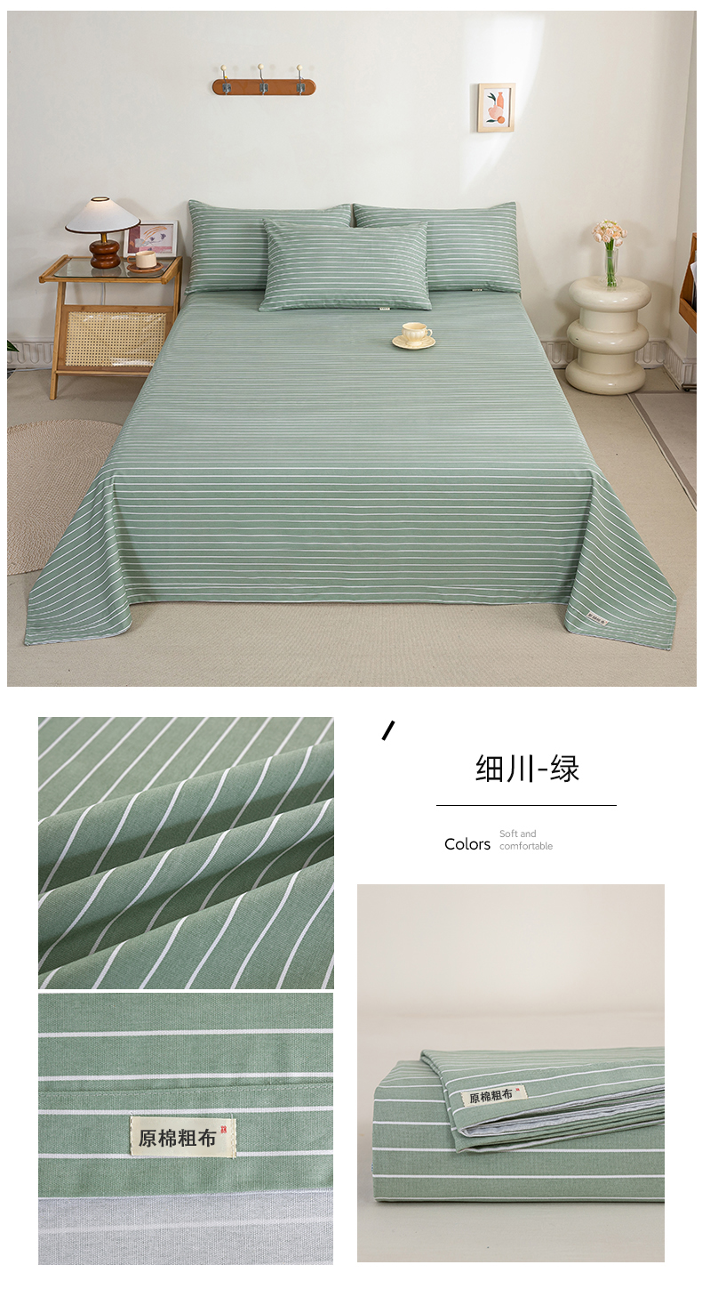 • 91家纺网 家纺一手货源 找家纺 鸣升 新款舒适透气100%全棉老粗布床单 细川(绿)
