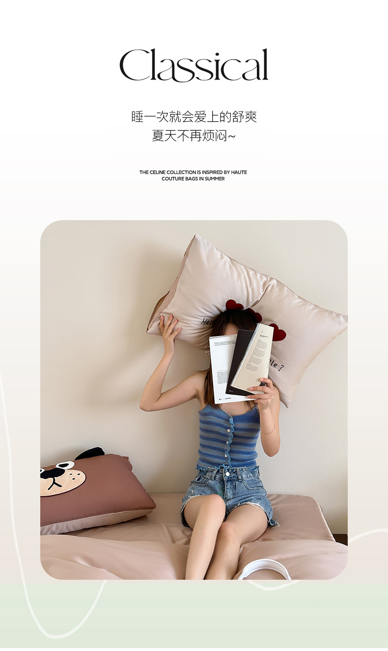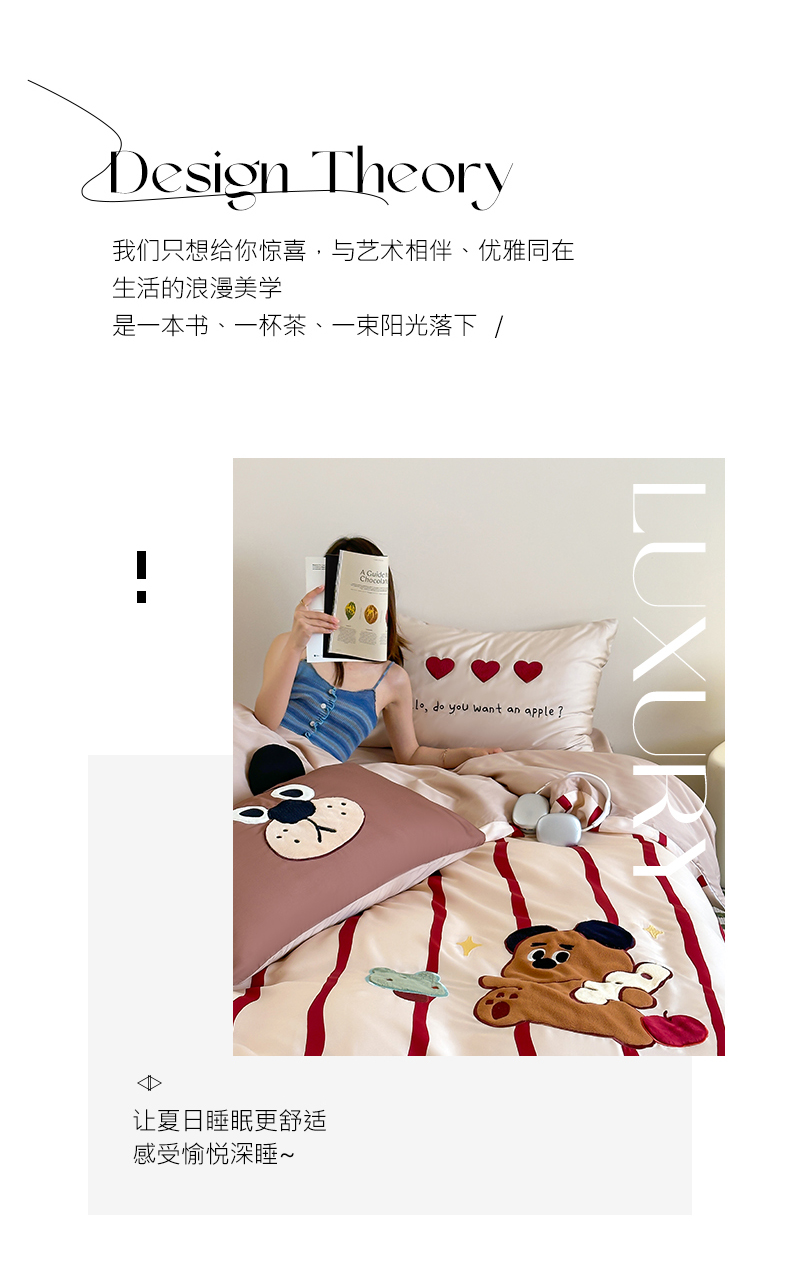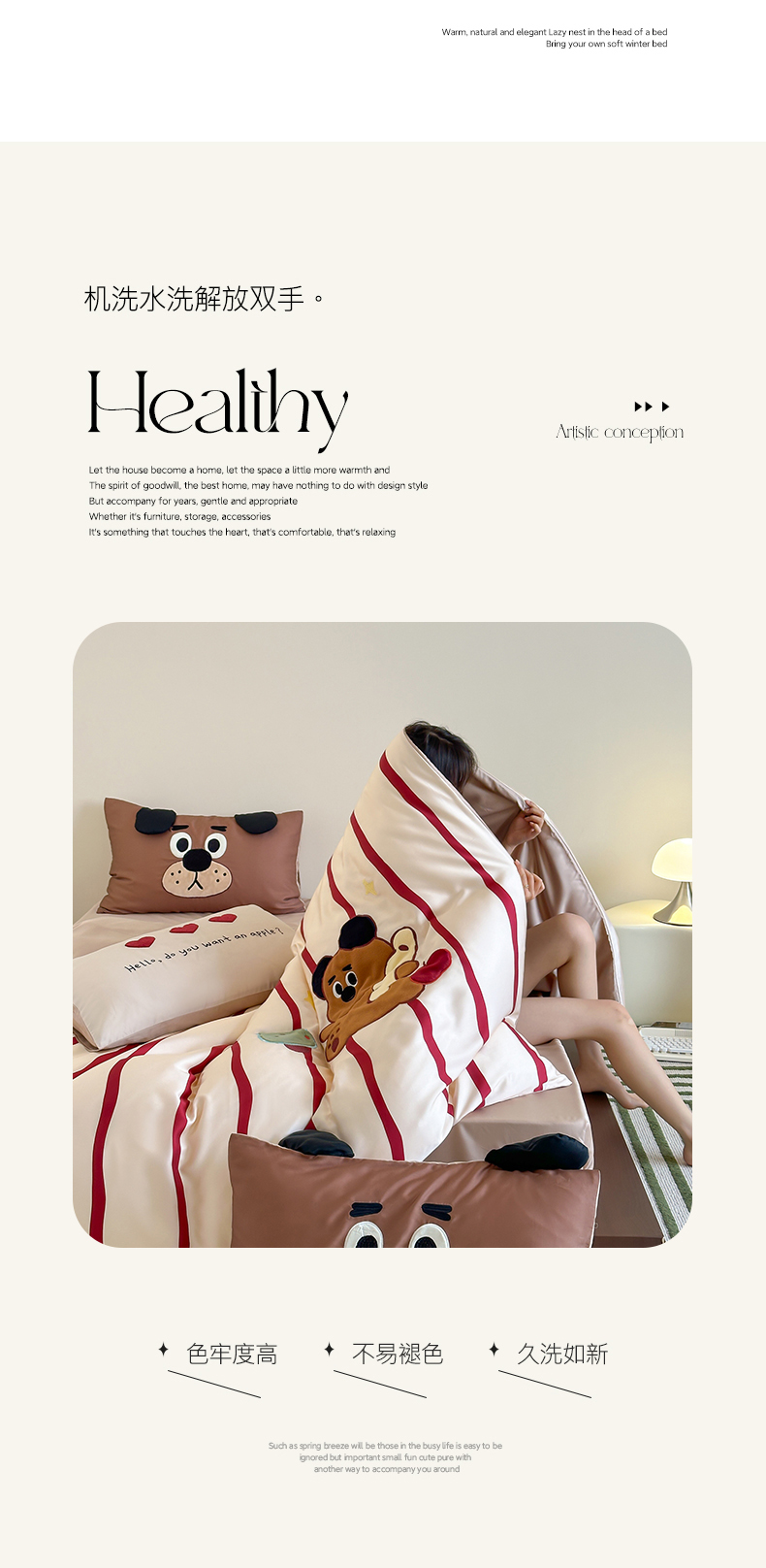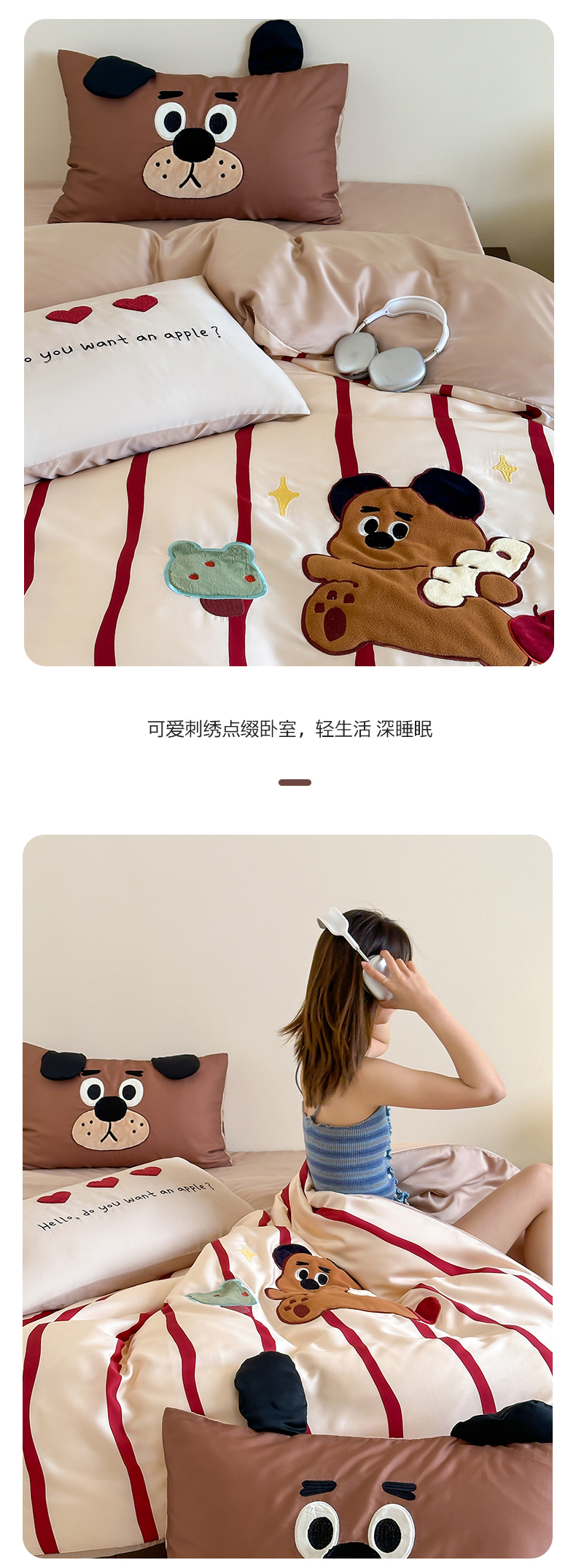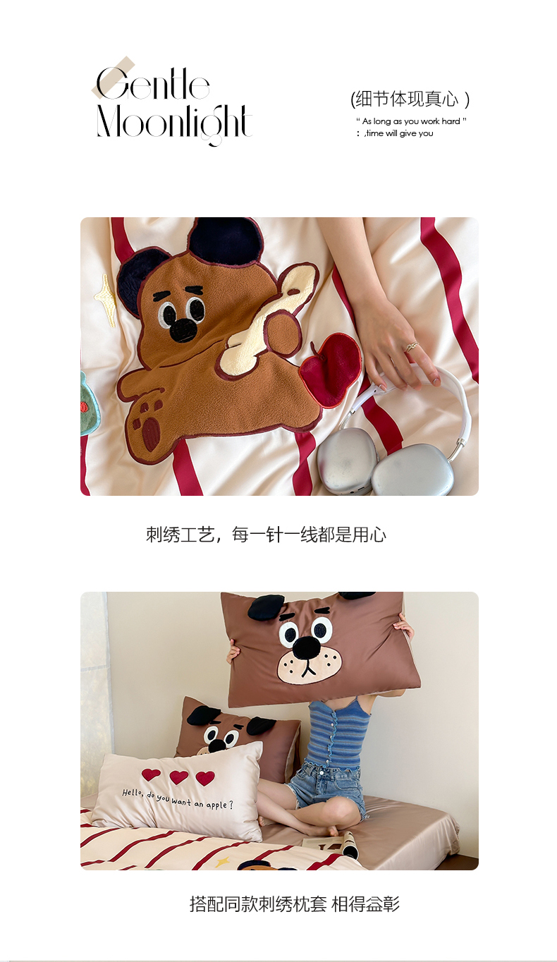 黛舒家居 2024新款天丝条纹款四件套 面包熊