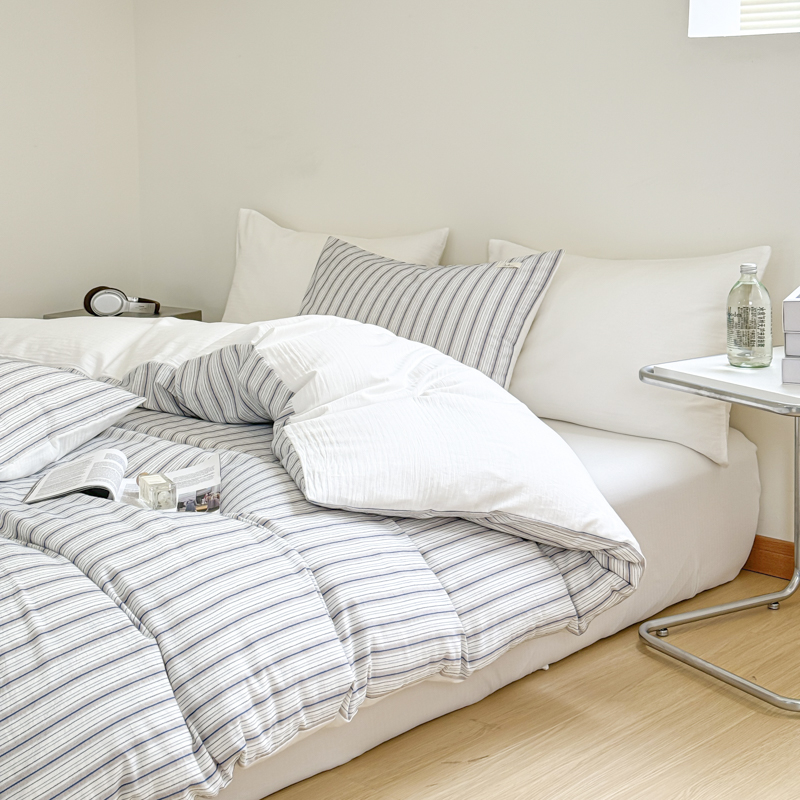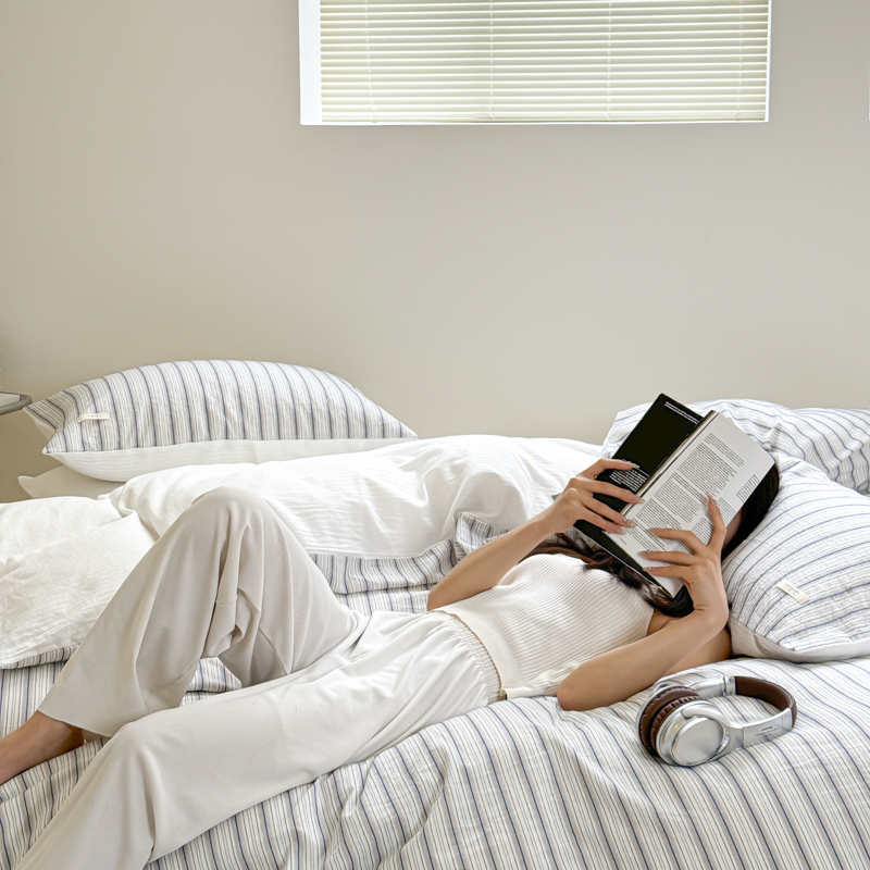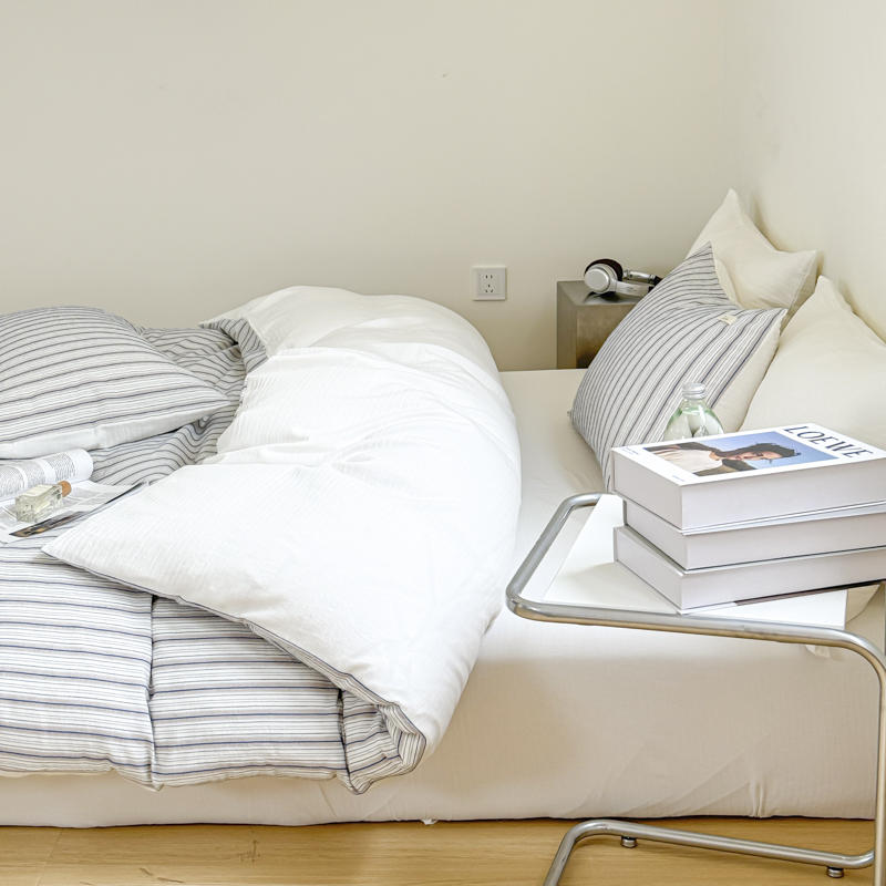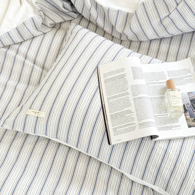 当前位置: 91家纺网 > 商品网购 > 床品套件 > 四件套 > 全棉普通四件套 > 玛奇朵 新款全棉色织立体提花四件套-海街日记 海街日记-蓝咖(搭配蓝色床单)