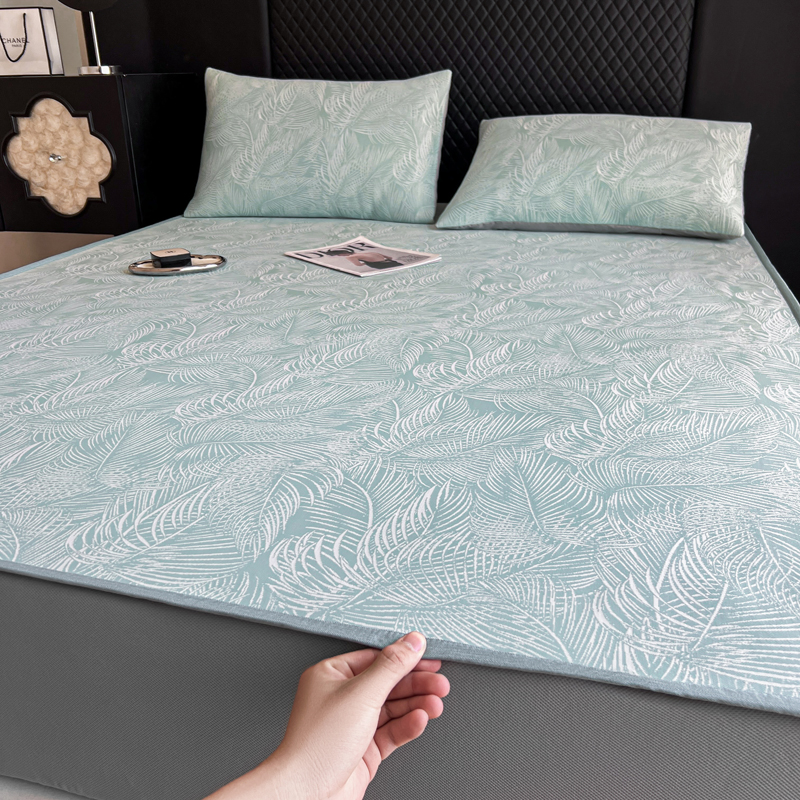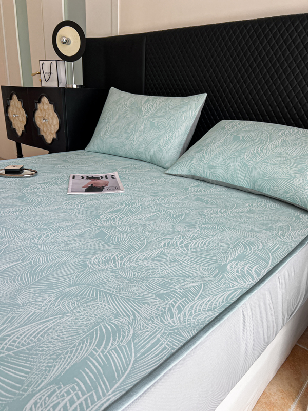 慕尚家纺 2025新款提花席床笠款 床笠-羽毛纷飞蓝